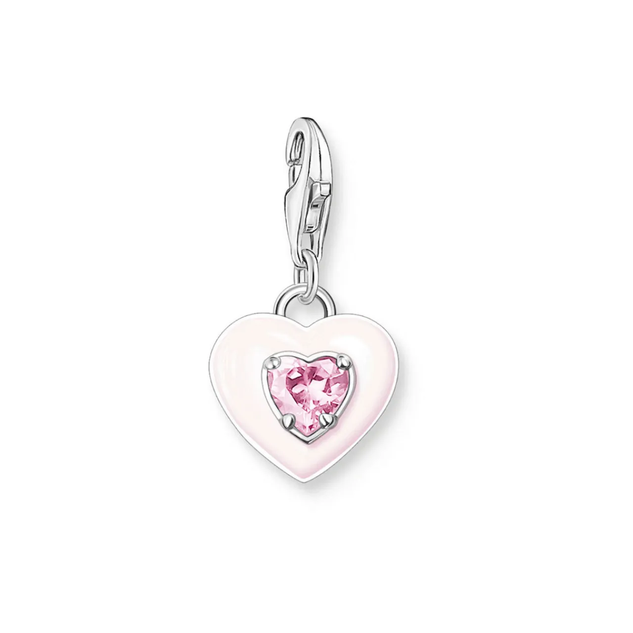- Heart shape, stone embellishment, lobster clasp attachment