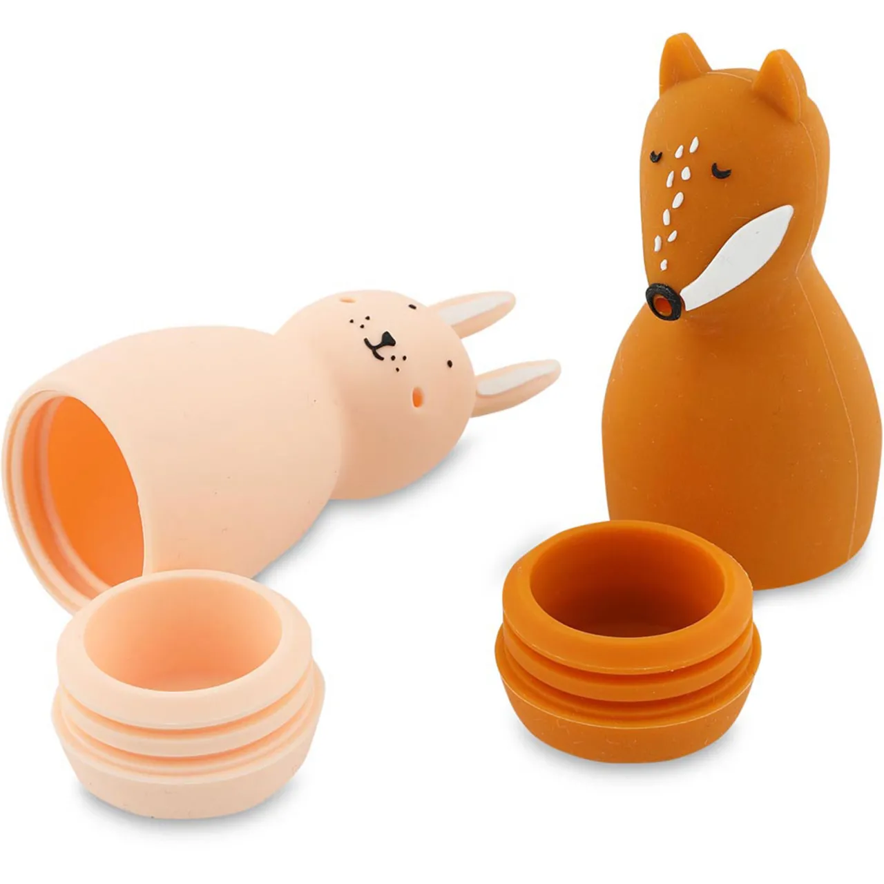 - Four pieces total, two squeezy animal design bath toys, sprinkle function, can be opened for easy cleaning