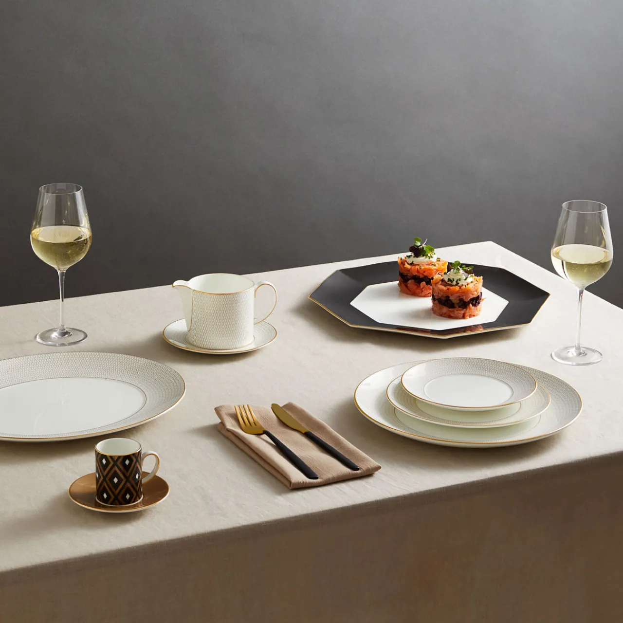 - Pasta bowl style, geometric pattern, 22-karat gold banding