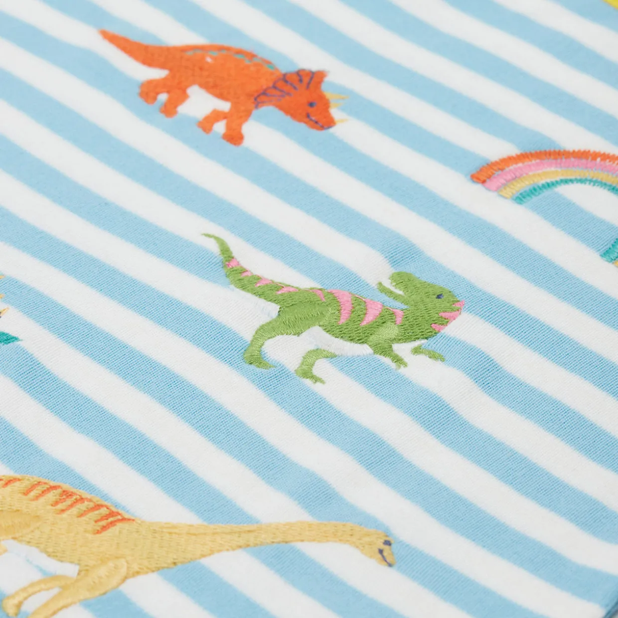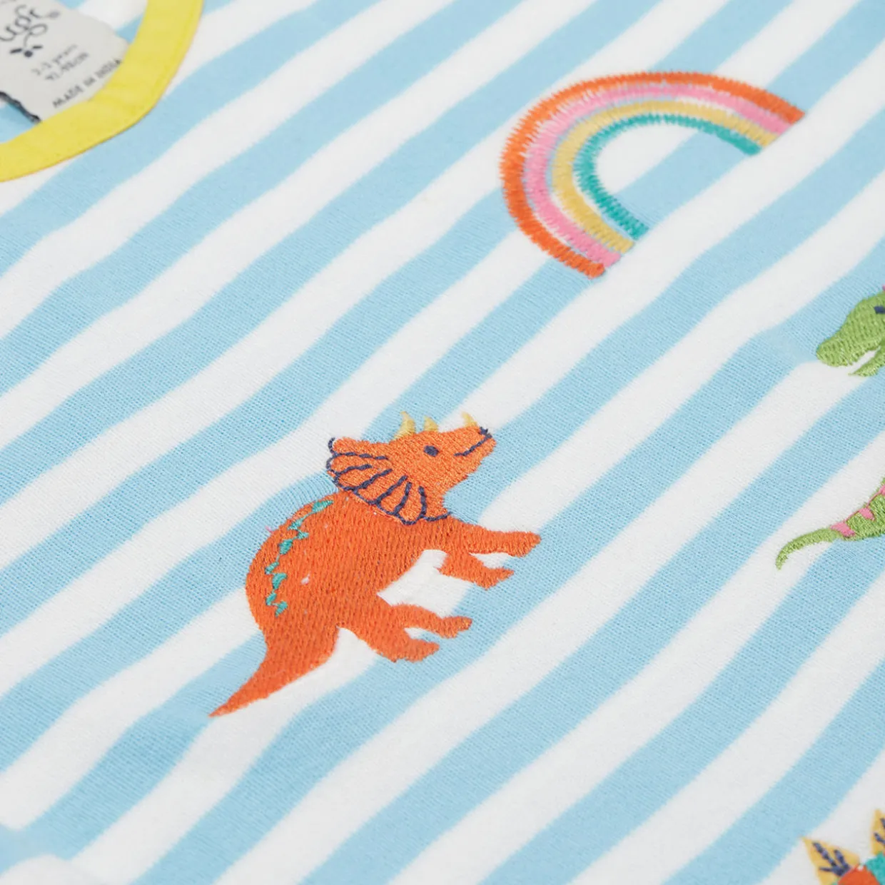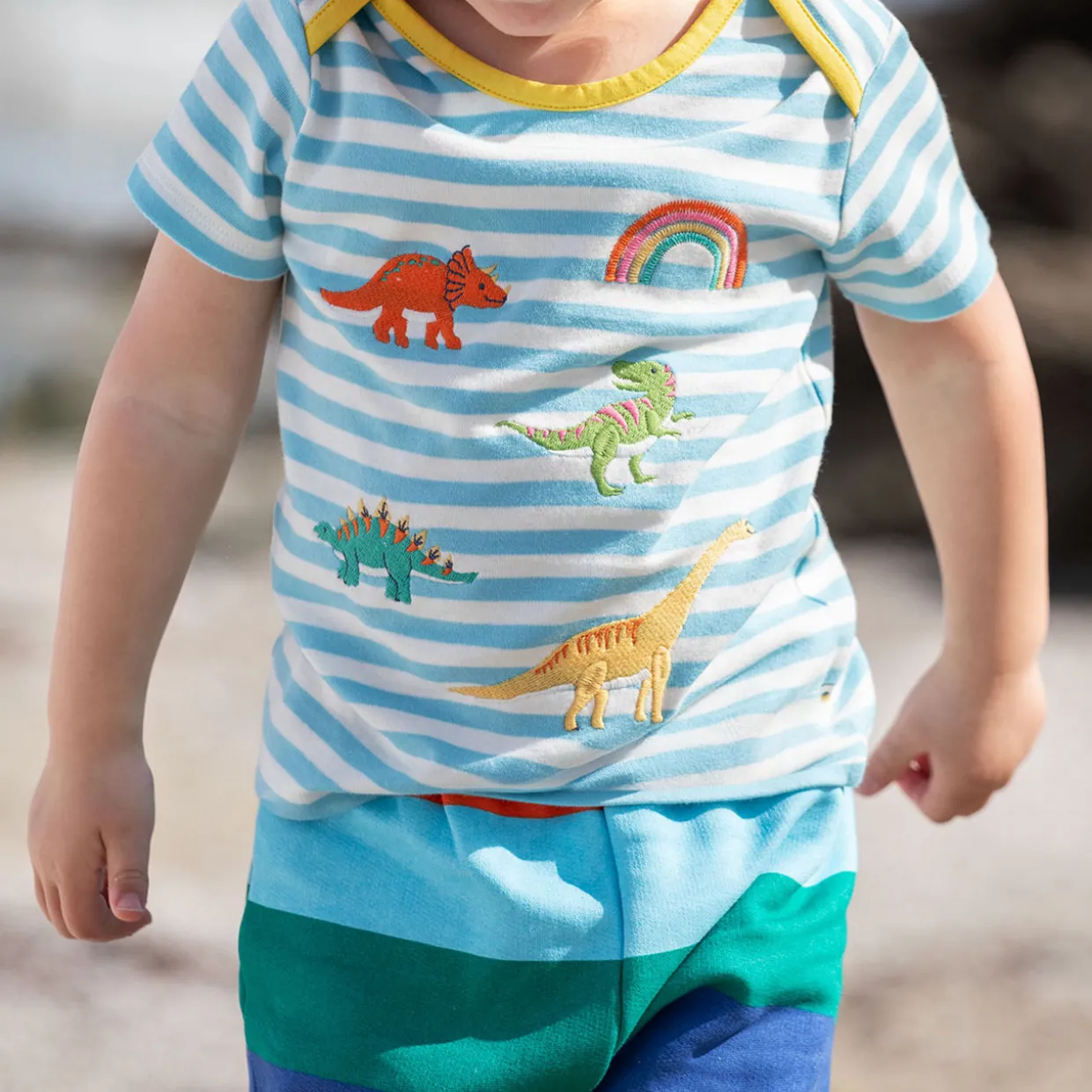 - Applique details, dinosaur theme, knitted, short sleeves, crew neckline