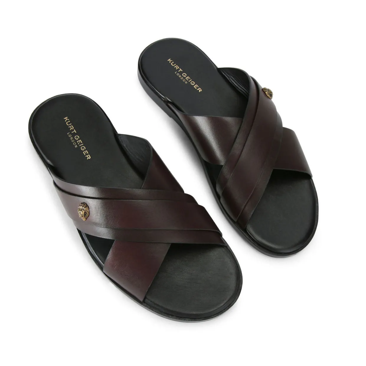 - Two crossed straps over the foot, antiqued brass eagle head with crystals