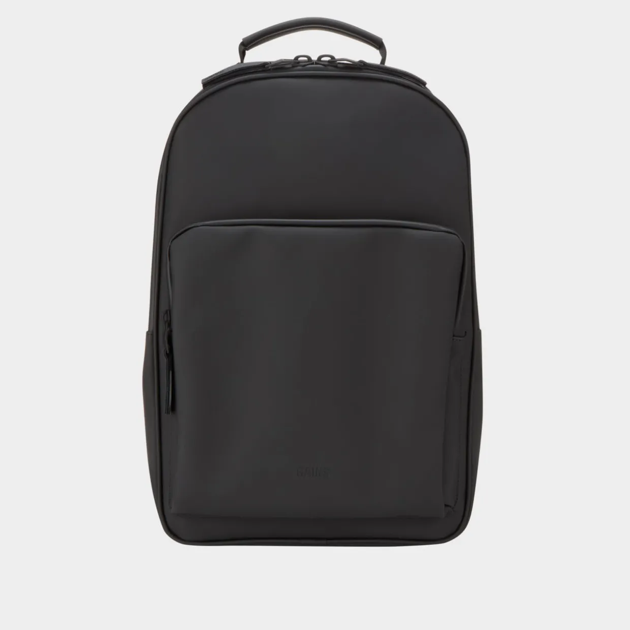 - Curved shape, zip-around fastening, spacious main compartment, exterior 15″ padded laptop sleeve, webbing carry handle, adjustable padded backstraps