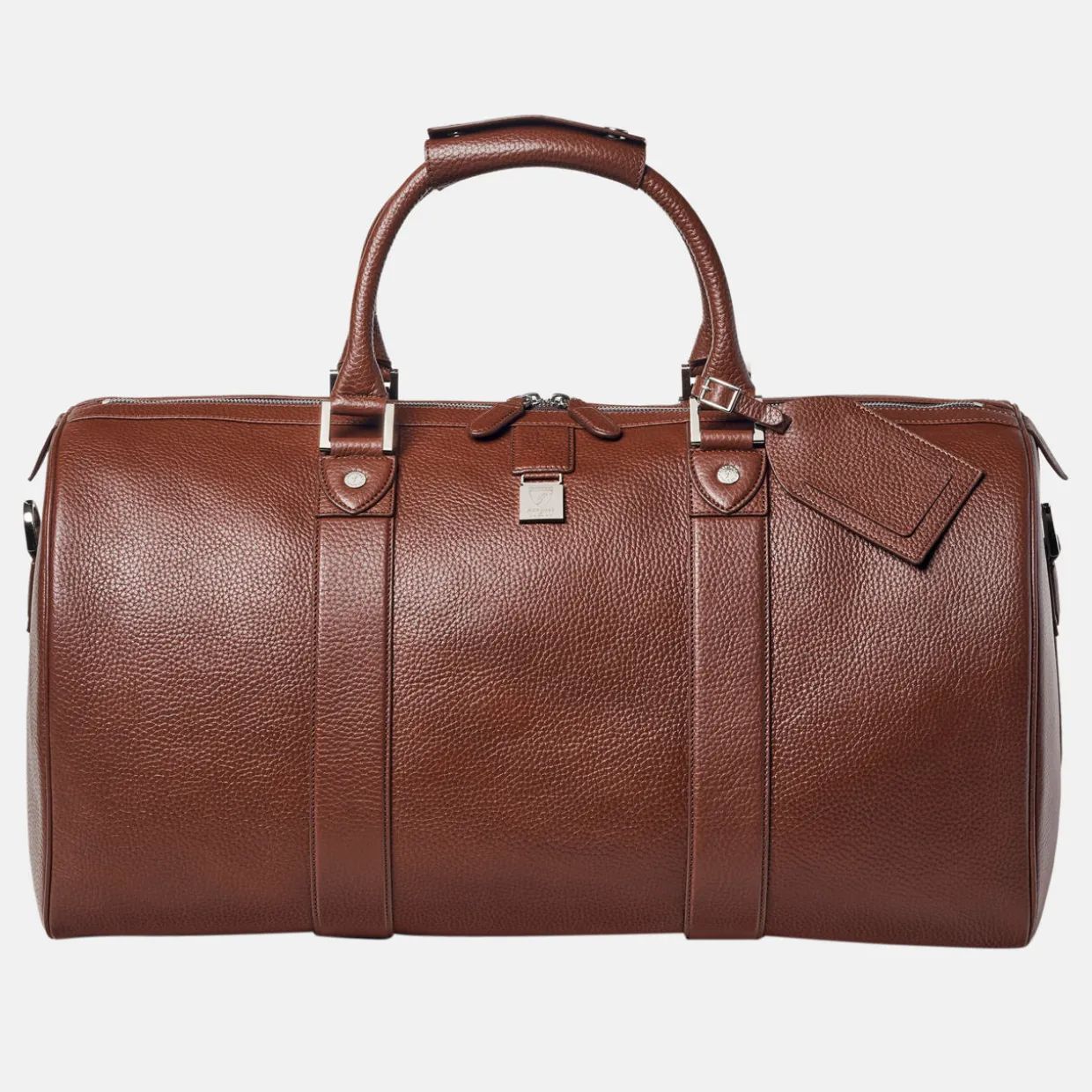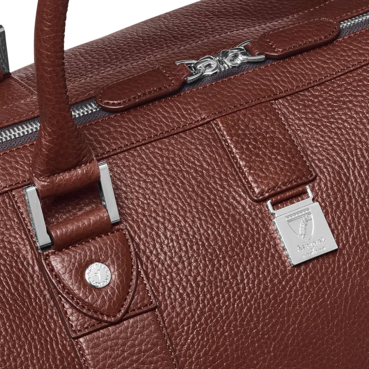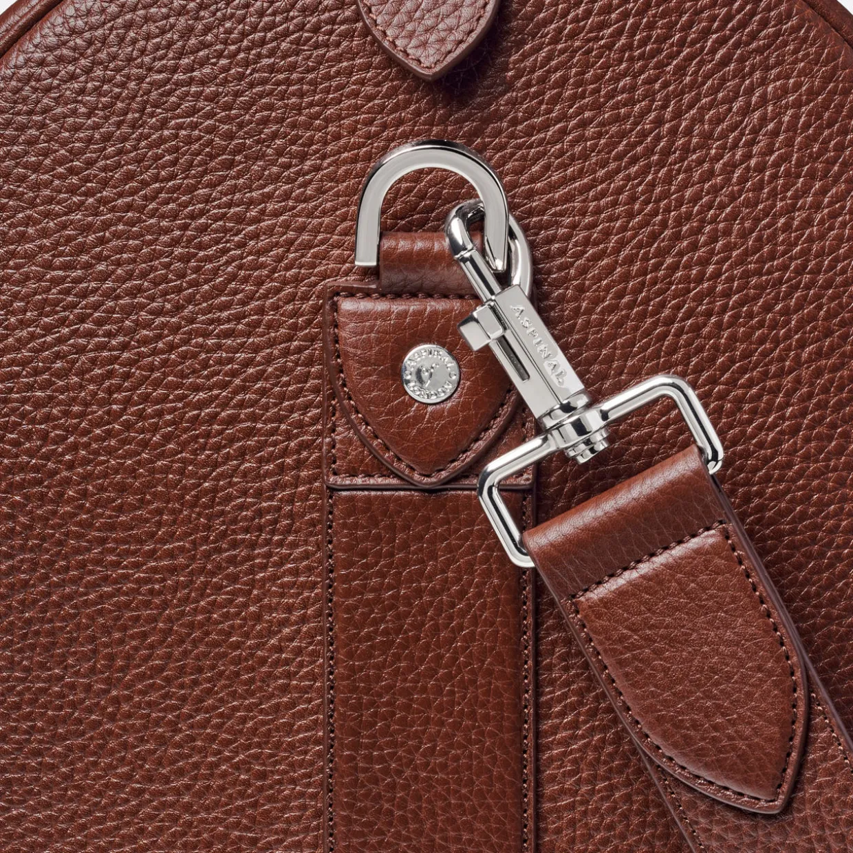 - Top handles, two-way top zip fastening, detachable and adjustable crossbody strap, signature hardware, silver-tone finishes, grained leather texture