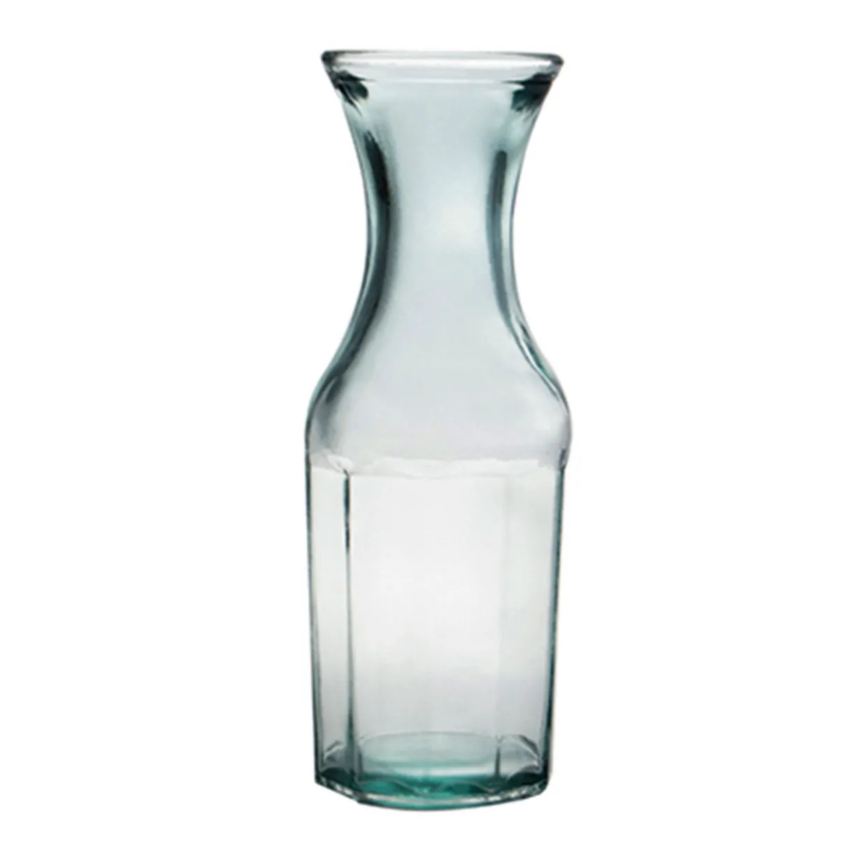 Crafted in Spain from 100% recycled glass, this stunning collection of bottles, jugs, glasses and dishes brings a taste of Mediterranean magic to any gathering. The green hue of the glass is a natural characteristic and simply adds to its uniqueness.