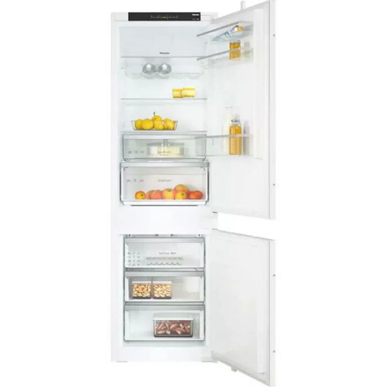 Built-in fridge-freezer combination with DailyFresh ExtraCool, LED lighting, NoFrost and sliding hinge.