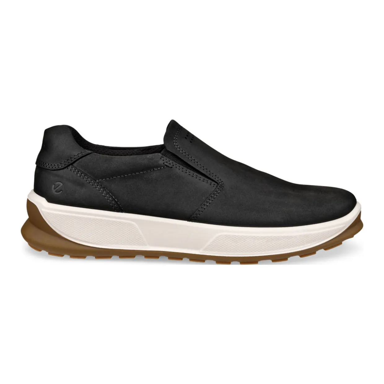 - Slip-on design, low cut shoe, Ecco leather construction, slip-on style, easy off sole edge below heel, tactical placed ventilation, Ecco FLUIDFORM™ for soft flexible and fluid movement, naturally supportive anatomical fit, rubber outsole for grip