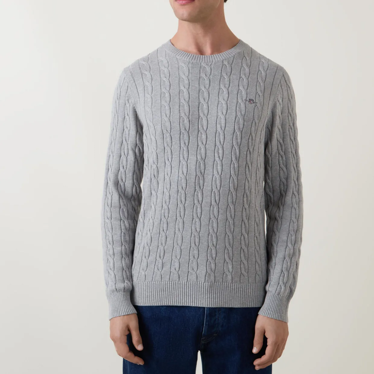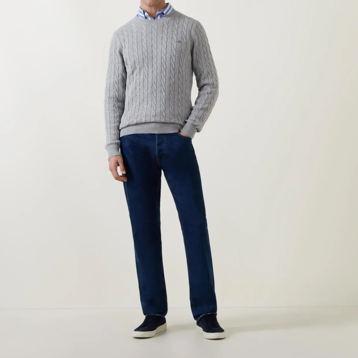 - Long sleeves, crew neck, cable knit pattern, embroidered logo, regular fit, ribbed trims