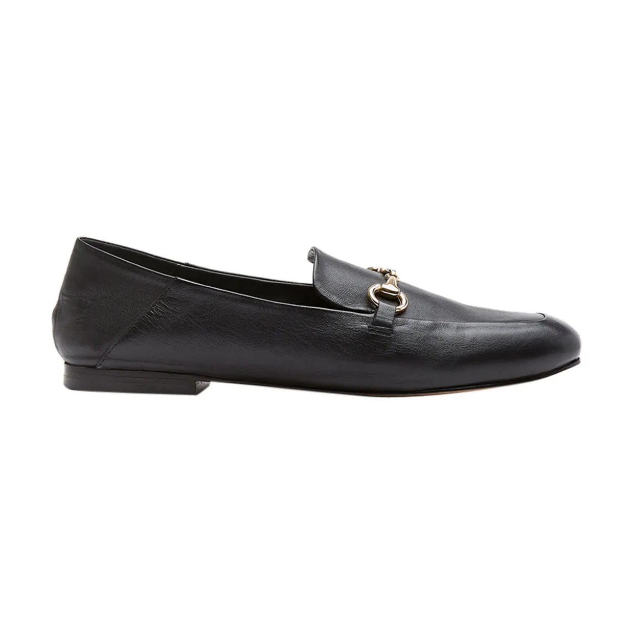 - Almond toe, gold-tone horse bit, soft back panel