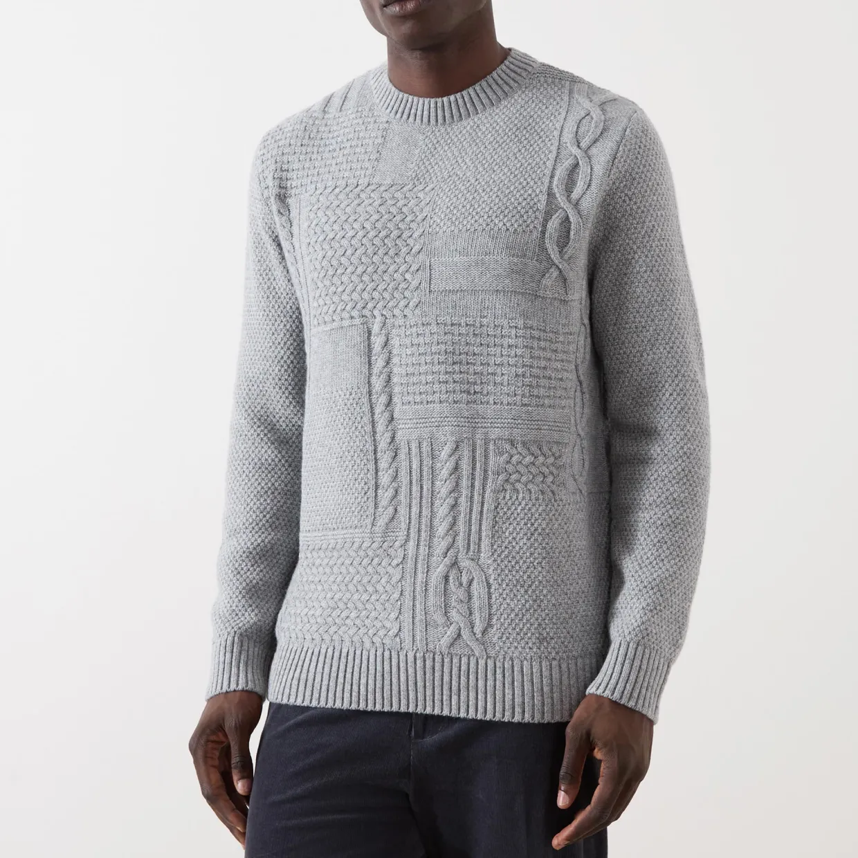 - Crew neck, long sleeves, straight hem, ribbed trims, cable-knit design