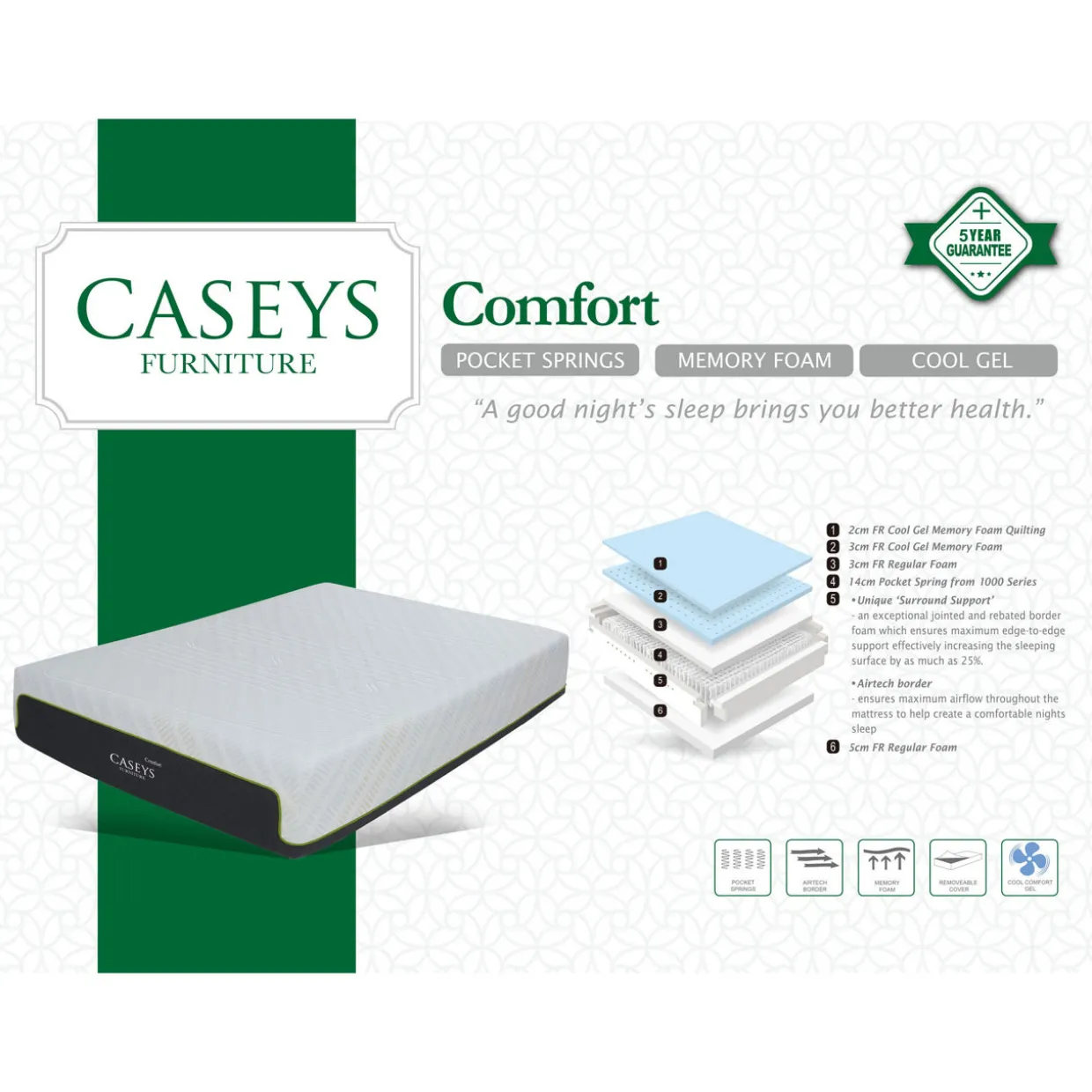 The Caseys New Comfort Mattress helps you say goodbye to restless nights. This mattress elevates your sleep by providing the support your body deserves and the coolness your senses crave.