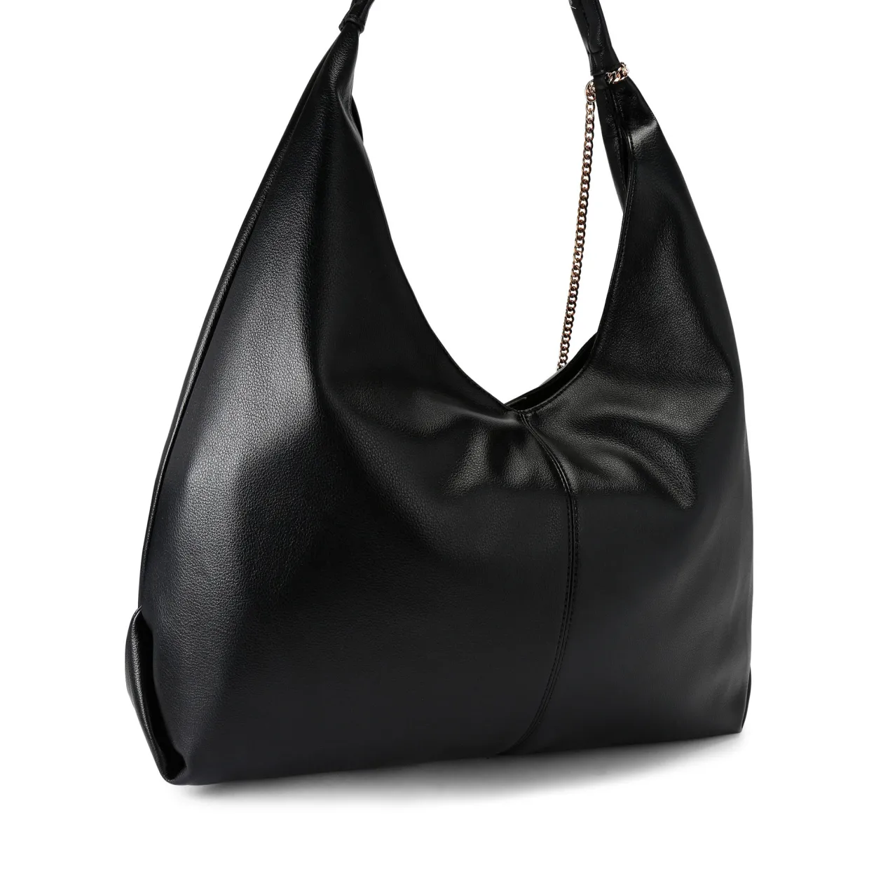 - Hobo silhouette, shoulder strap, smooth leather alternative, gold hardware, padlock detailing