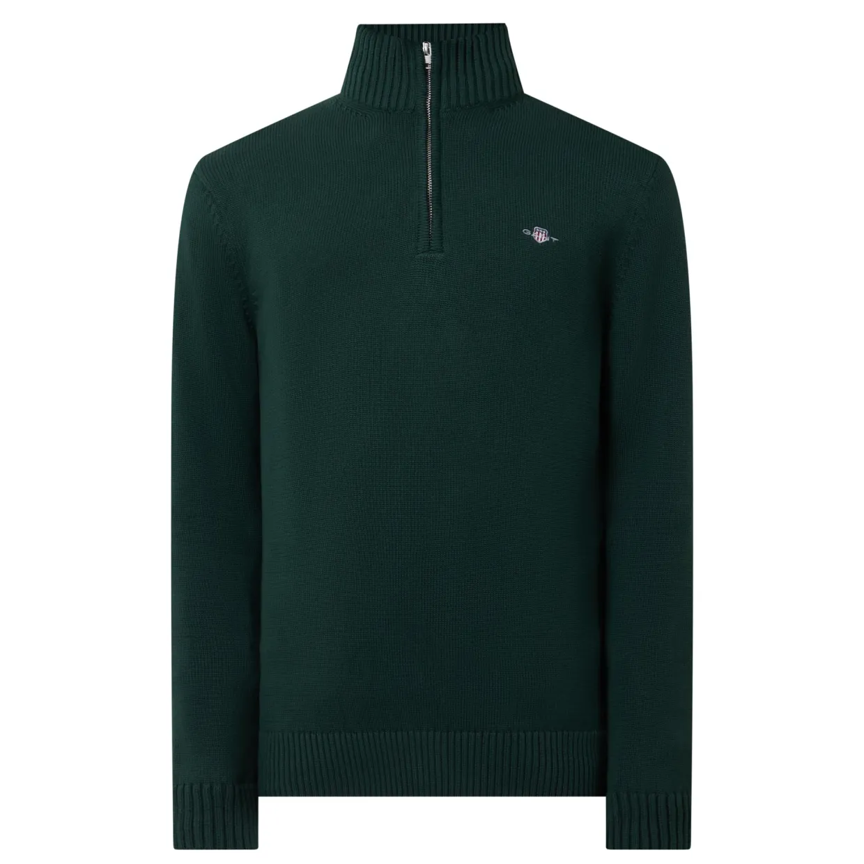 - Half-zip collar with ribbed detailing, long sleeves, ribbed hem and cuffs, embroidered logo design