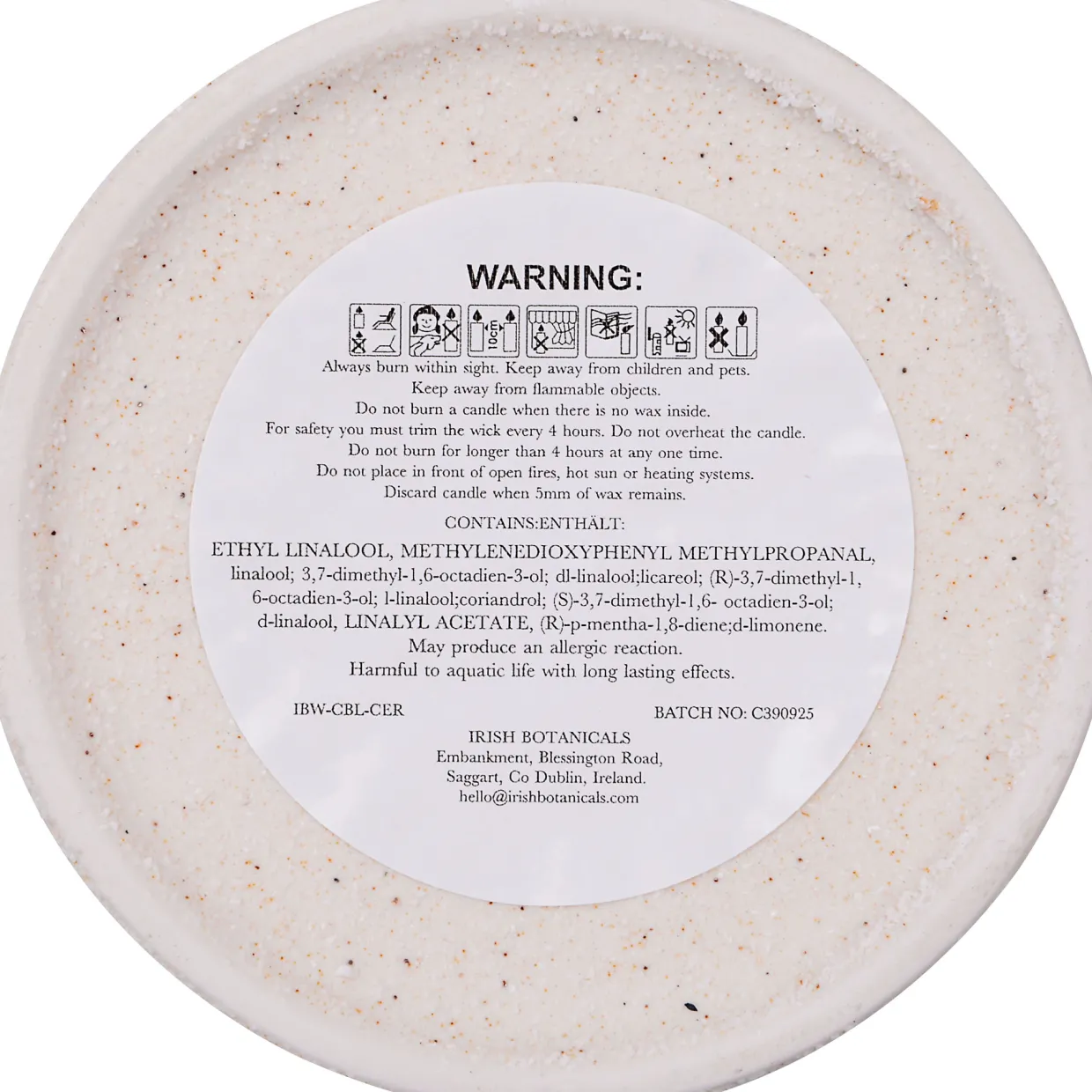 - Always burn within sight, for safety you must trim the wick every 4 hours, do not overheat the candle or burn for longer than 4 hours at any one time, do not place in front of open fires, hot sun or heating systems, discard candle when 5mm of wax remains