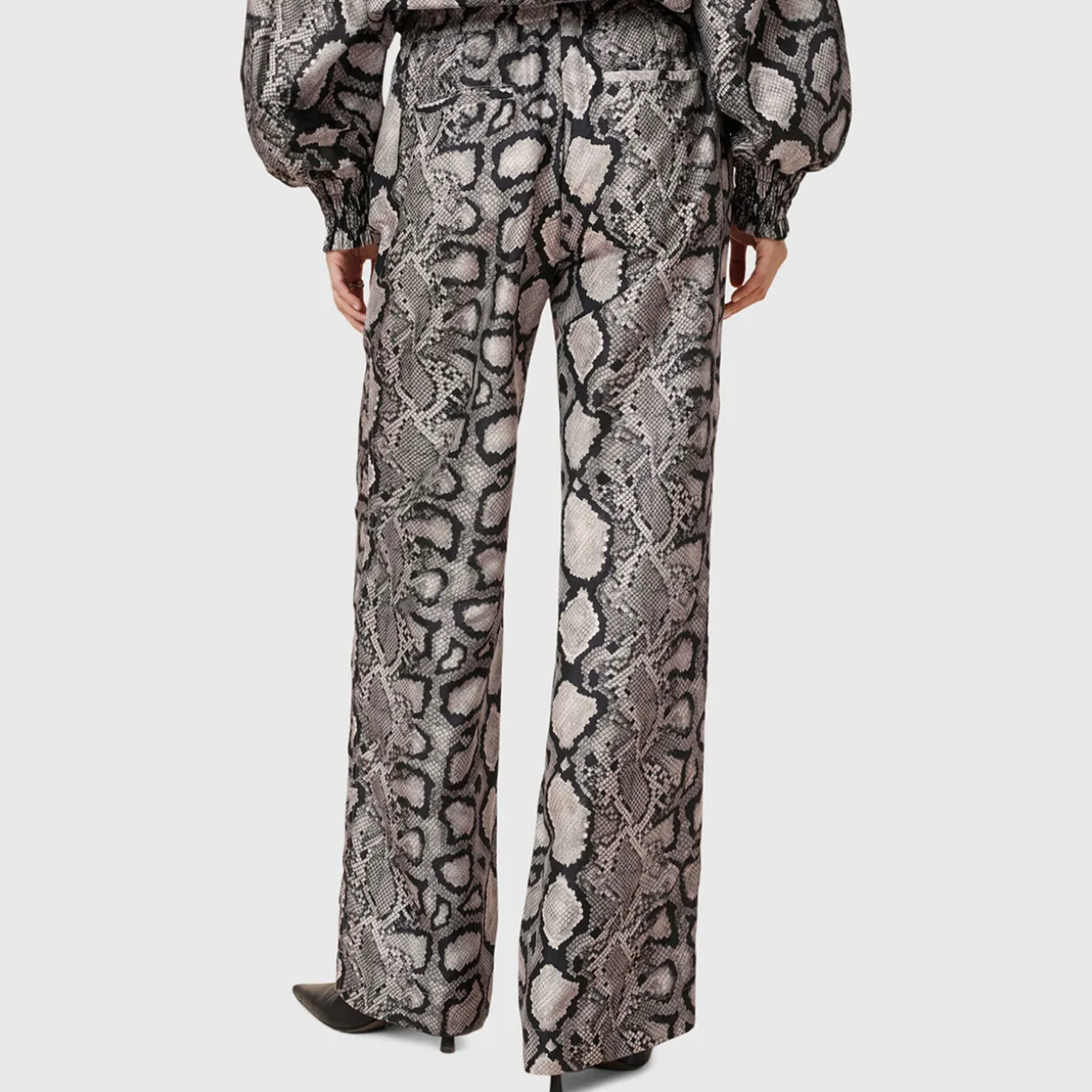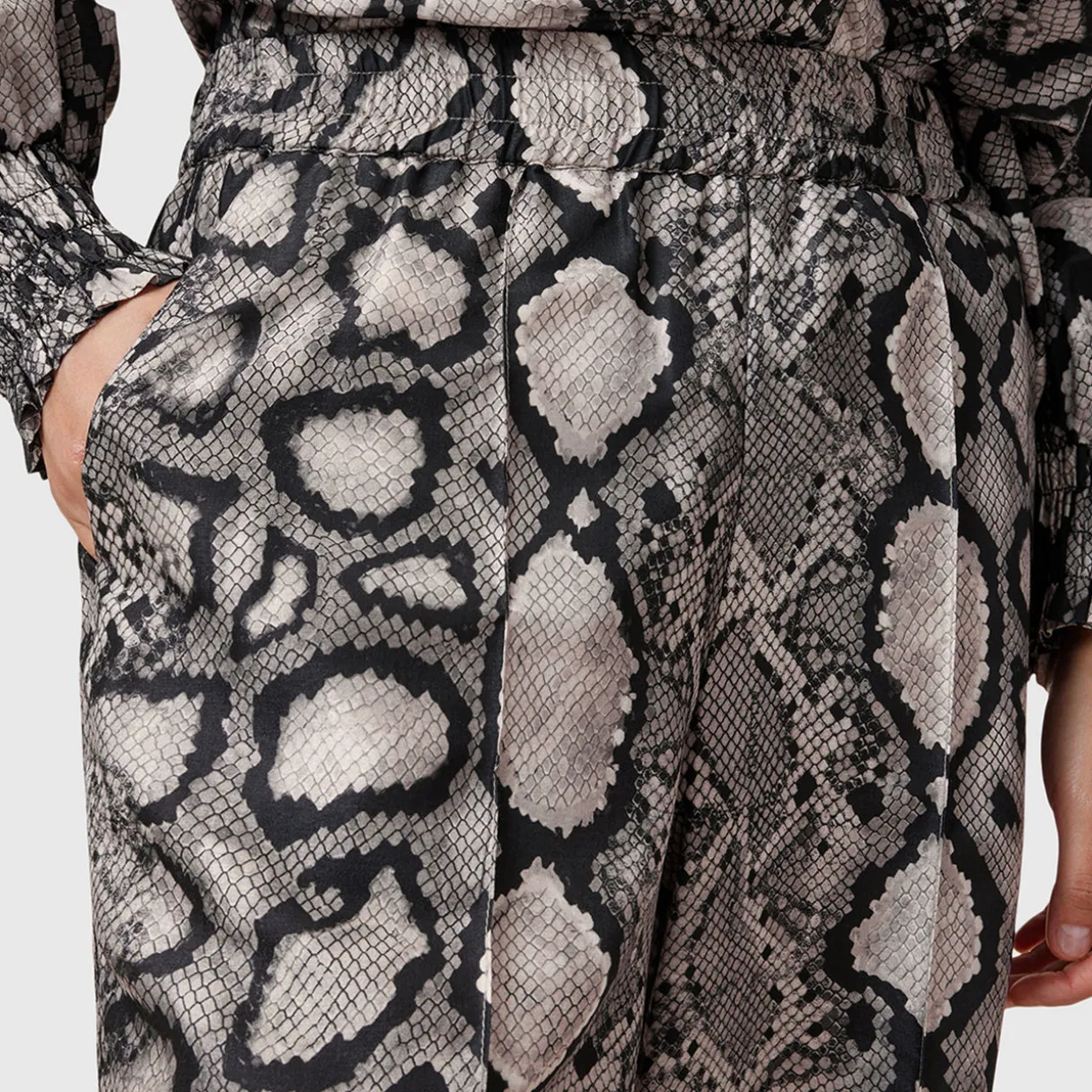 - High rise, wide leg, elasticated waist, snake print, side pockets