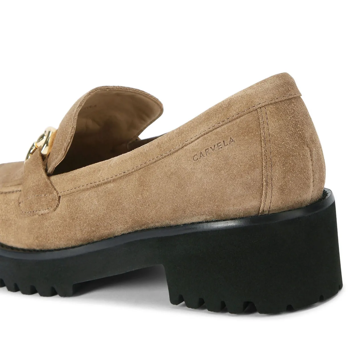 - Loafer style, suede upper, gold-tone horsebit chain detail, chunky sole, ‘All Day Long’ technology