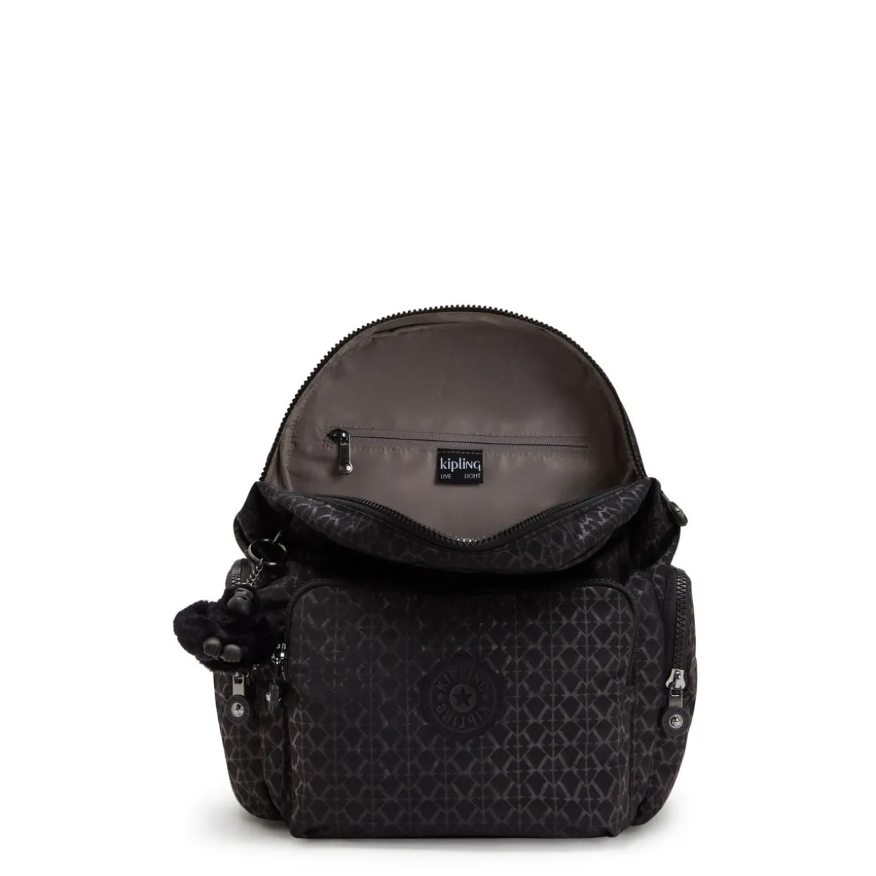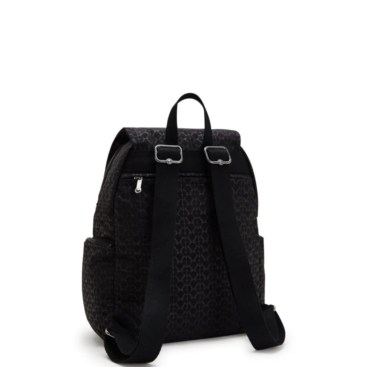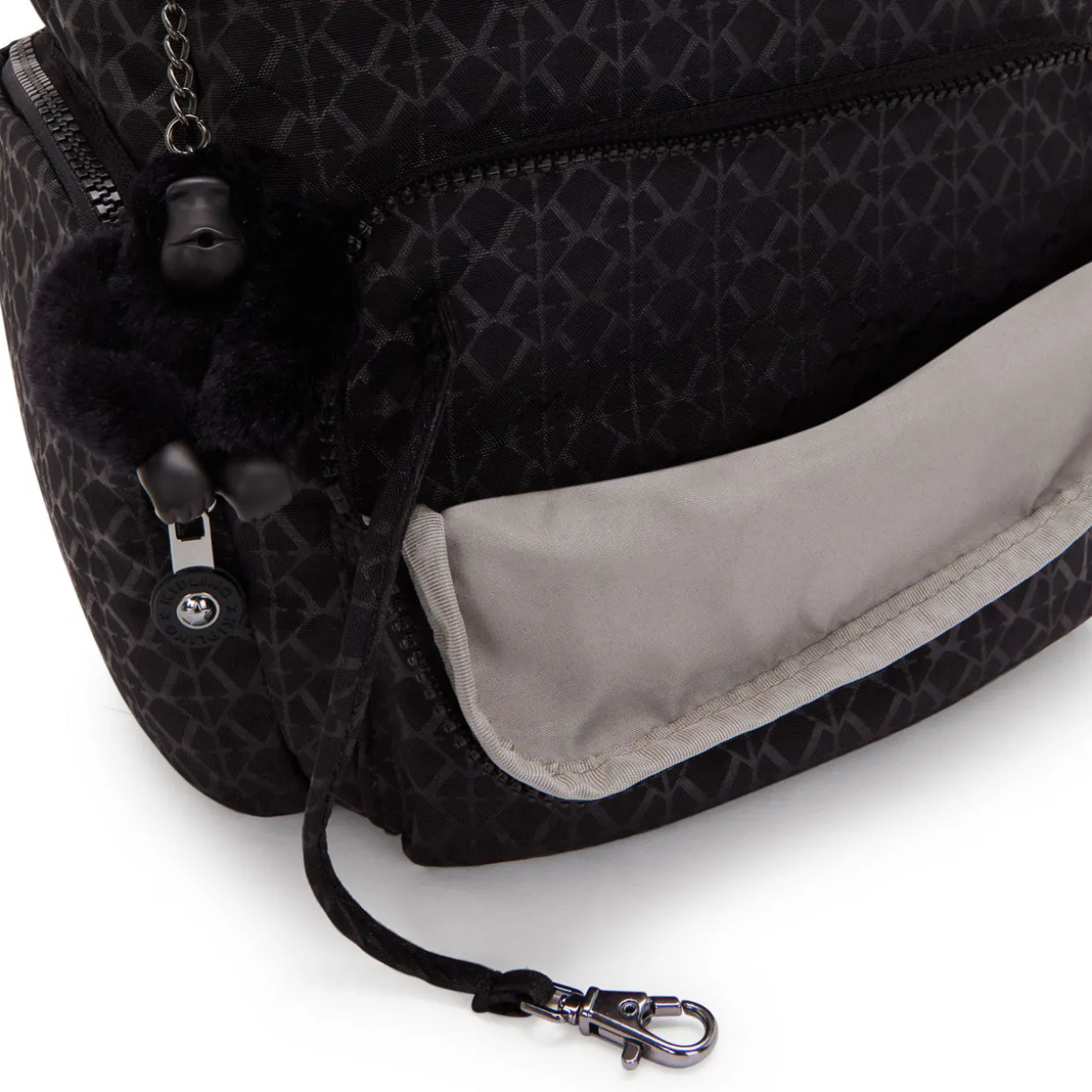 - Flap with zip fastening, top carry handle, adjustable back straps, silver-tone hardware, logo badge, Kipling monkey charm, key leash, printed