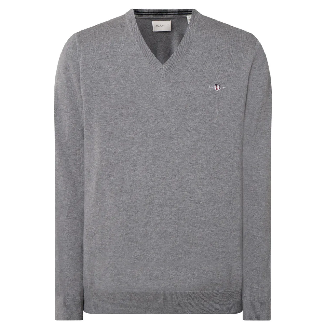 - V-neckline, ribbed trims, straight hemline, fine knit structure, embroidered shield logo detail