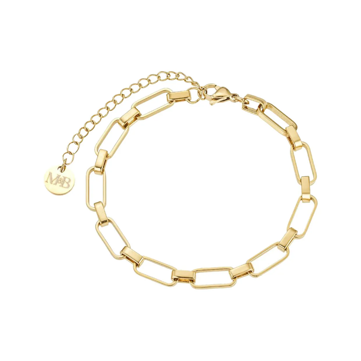 - PVD coated for durability, gold-toned, link chain, water resistant, tarnish resistant, monogram charm