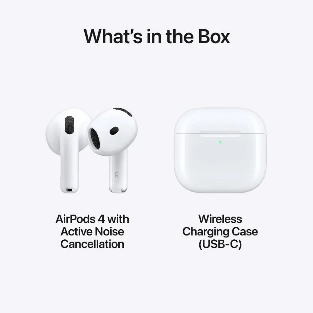 ACTIVE NOISE REDUCTION— AirPods 4 with Active Noise Reduction minimize external noise before it reaches your ears, allowing you to fully immerse in your audio experience.