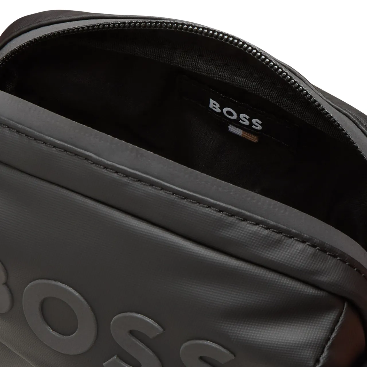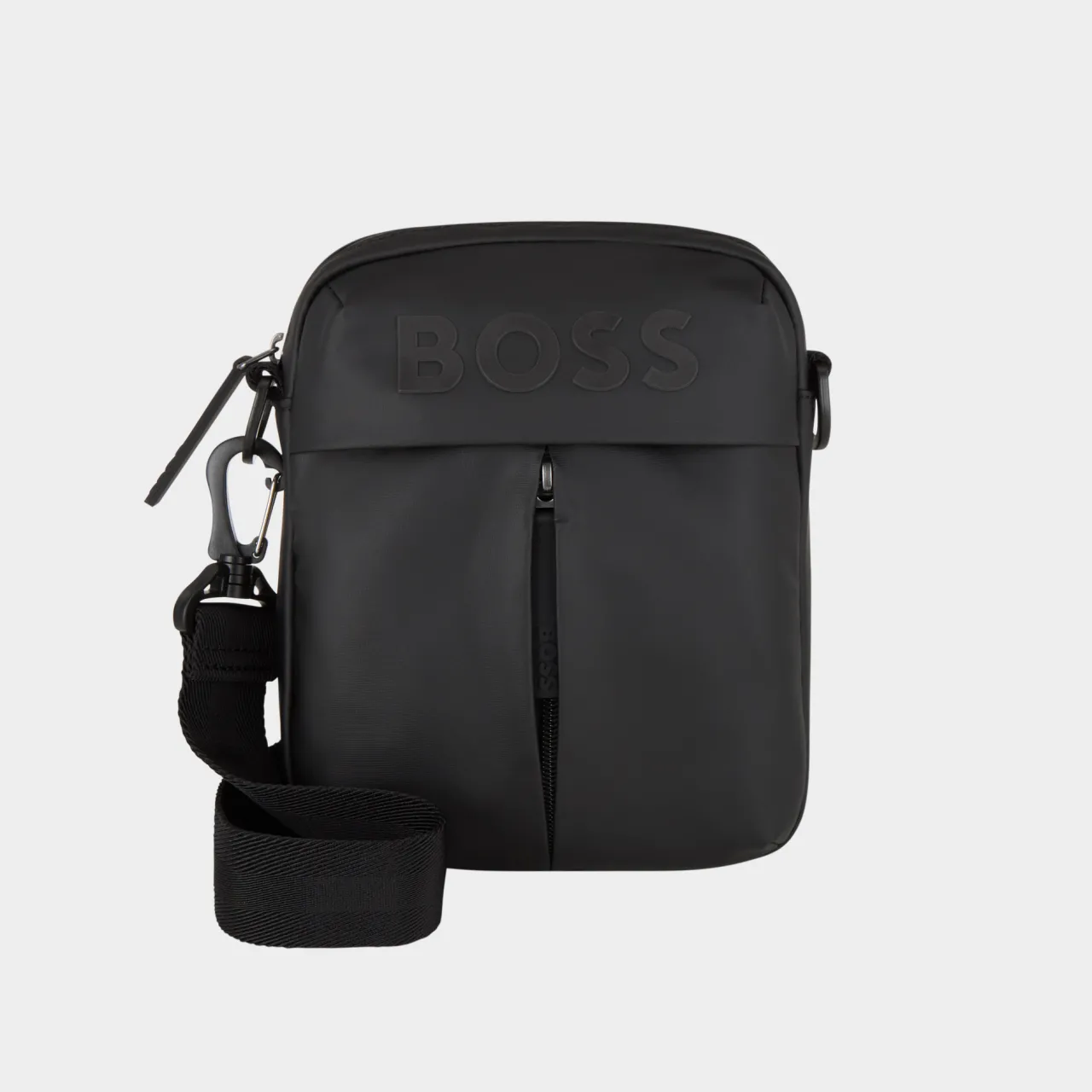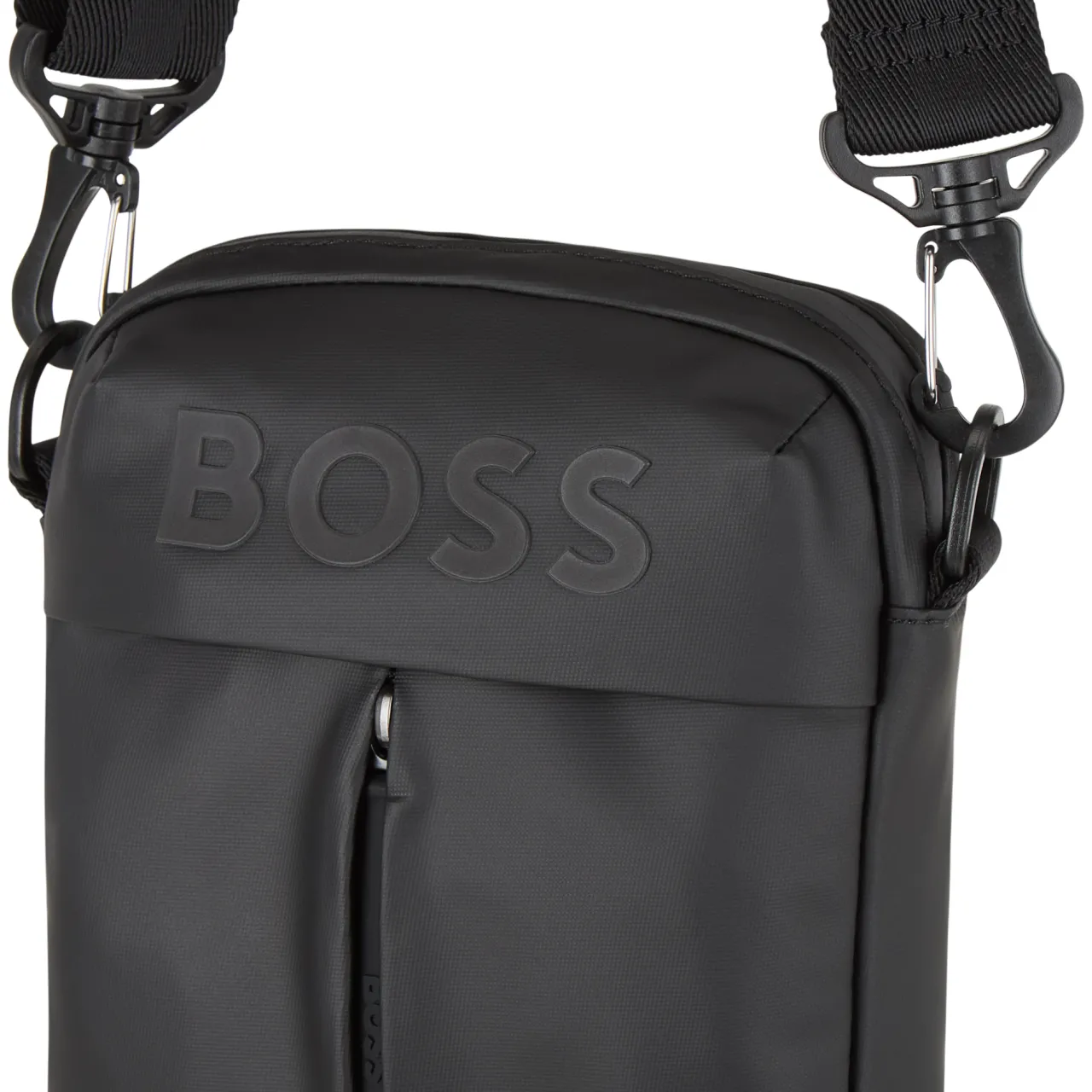 - Logo detail, adjustable crossbody strap, zip fastenings, vertical front pocket, boxy shape