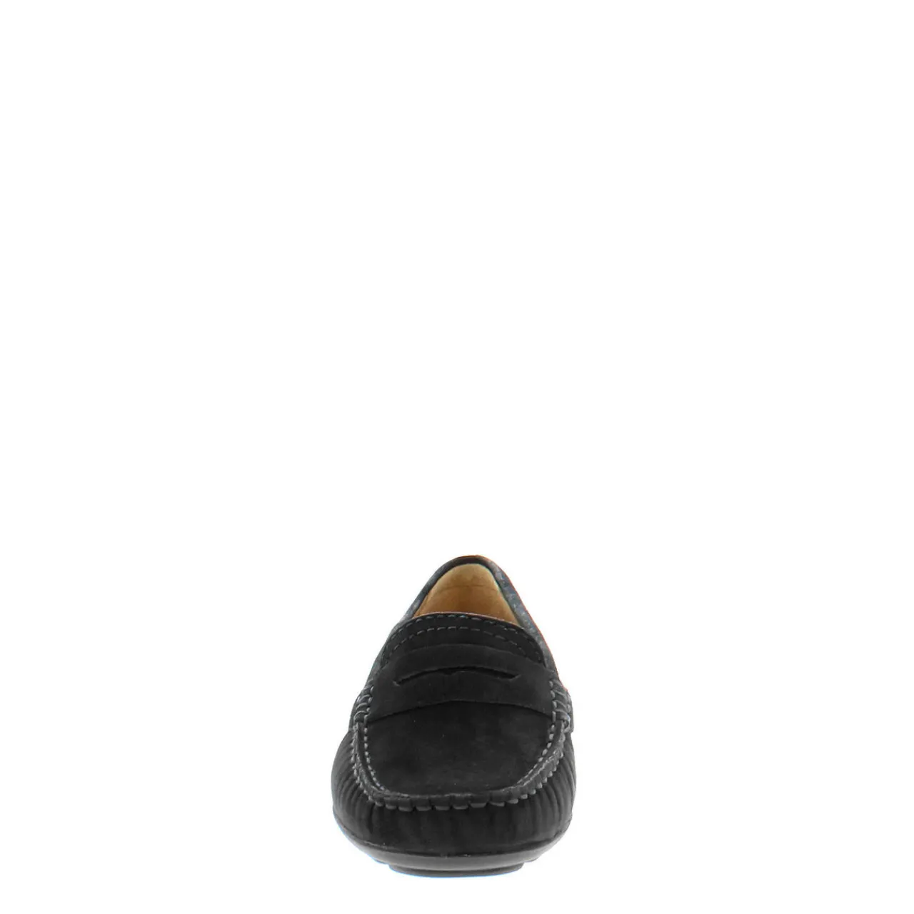 - Soft square toe, flexible rubber sole, penny loafer design, raised apron stitch detailing, leather lined, cushioned insole
