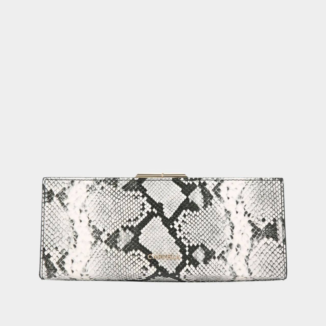 - Mini silhouette, shoulder strap, snake-printed leather alternative, gold clasp, chain strap