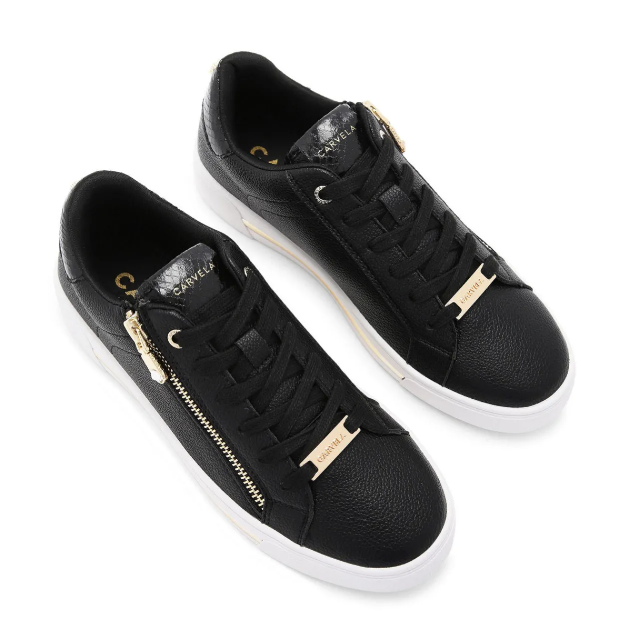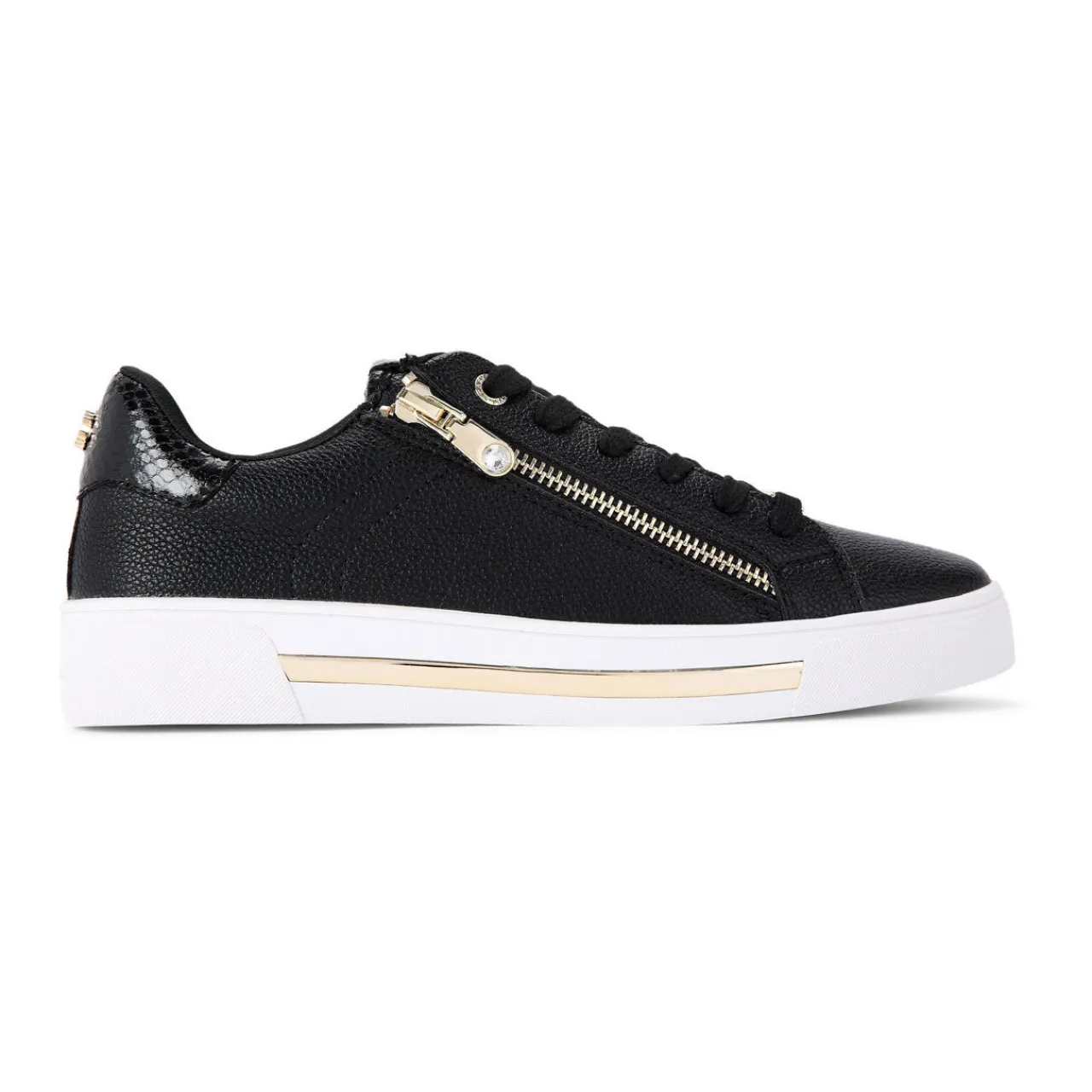 - Low top, lace up, gold-tone zip detail, tonal snake-effect heel counter and tongue, gold-tone metallic details