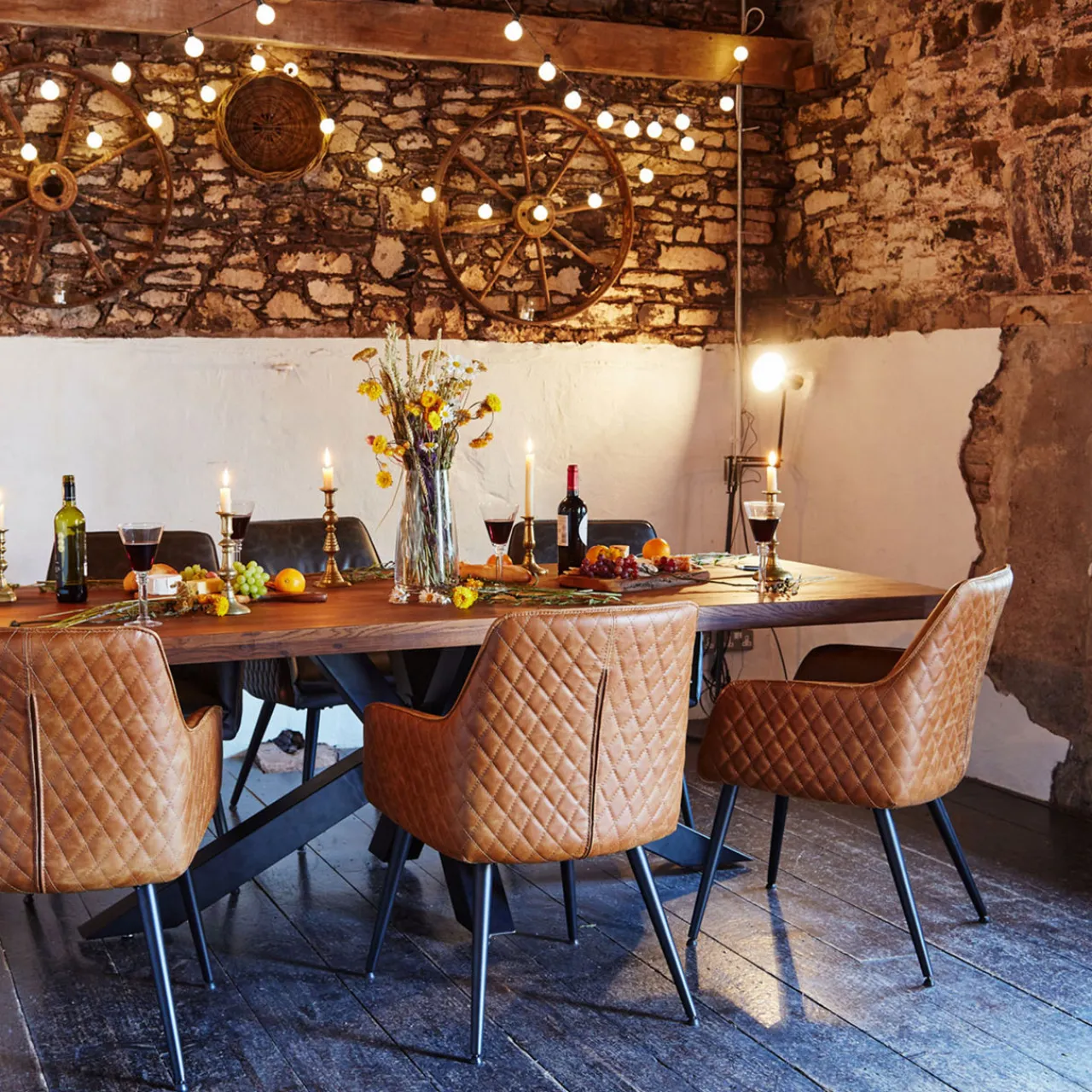 Dine in comfort and style with the Winston Dining Chair. Diamond stitching on the back adds a retro feel to this comfortable chair that would be a stylish addition to your home. Upholstered in tan leather, this would suit most decor styles.