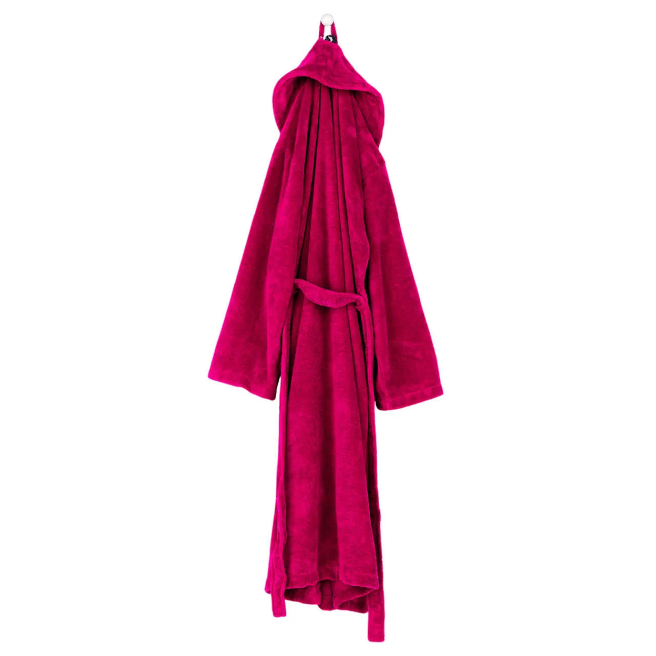 - Microvelour exterior, quick-drying terry towel interior, two patch pockets, long sleeves, shawl collar, self-tie belt, longline silhouette, hanging loop
