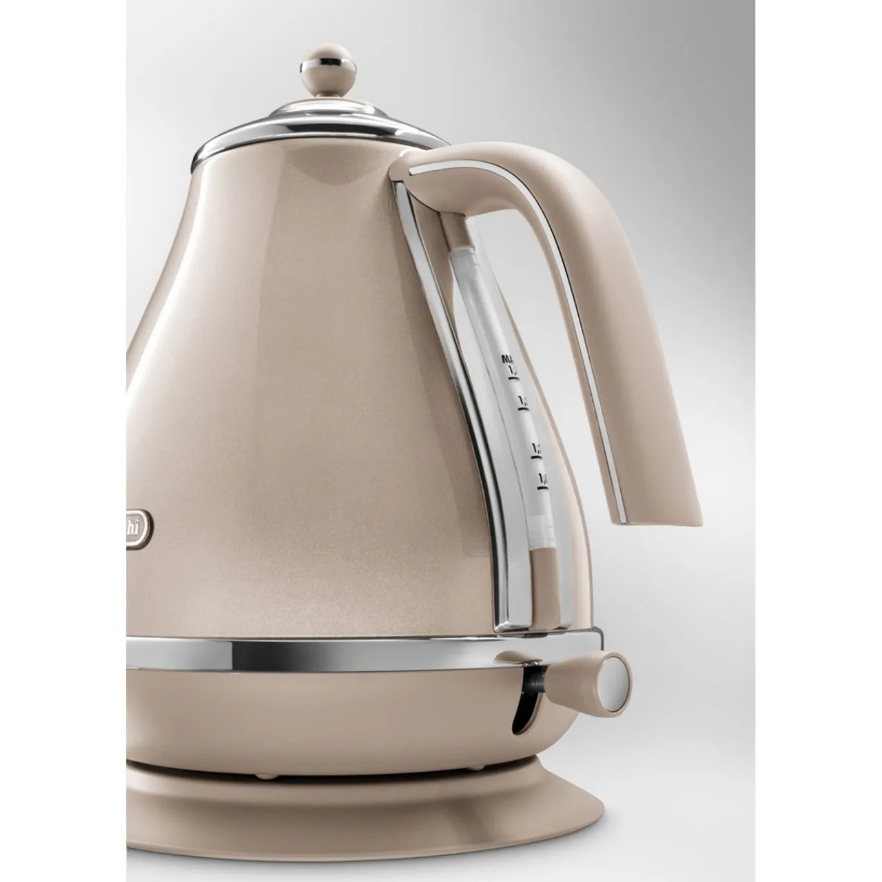 Great ease of use thanks to the water level indicator and the wieldy rotating swivel base Water capacity up to 1.7 litres Add an exclusive touch of class to your kitchen with the Icona Metallics design