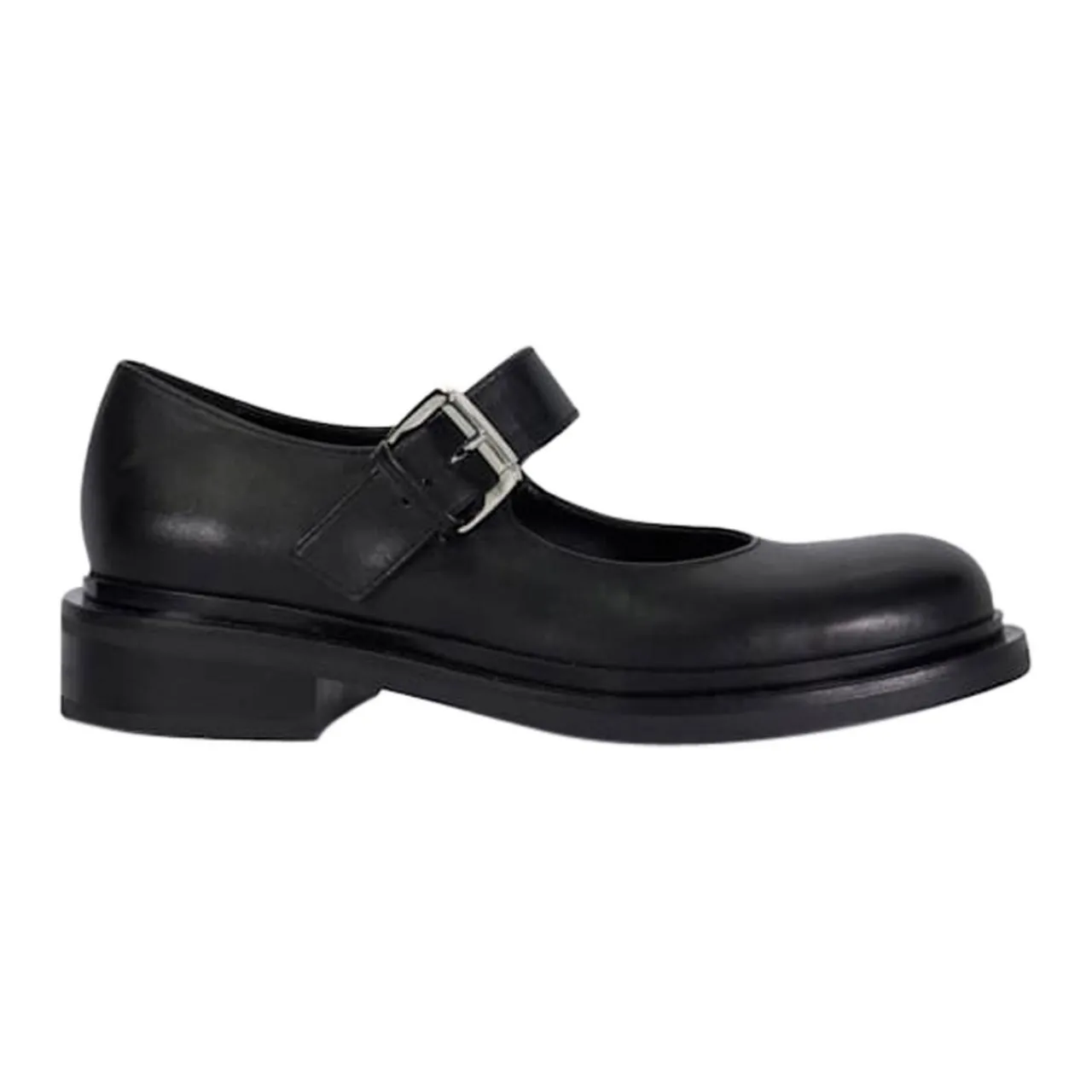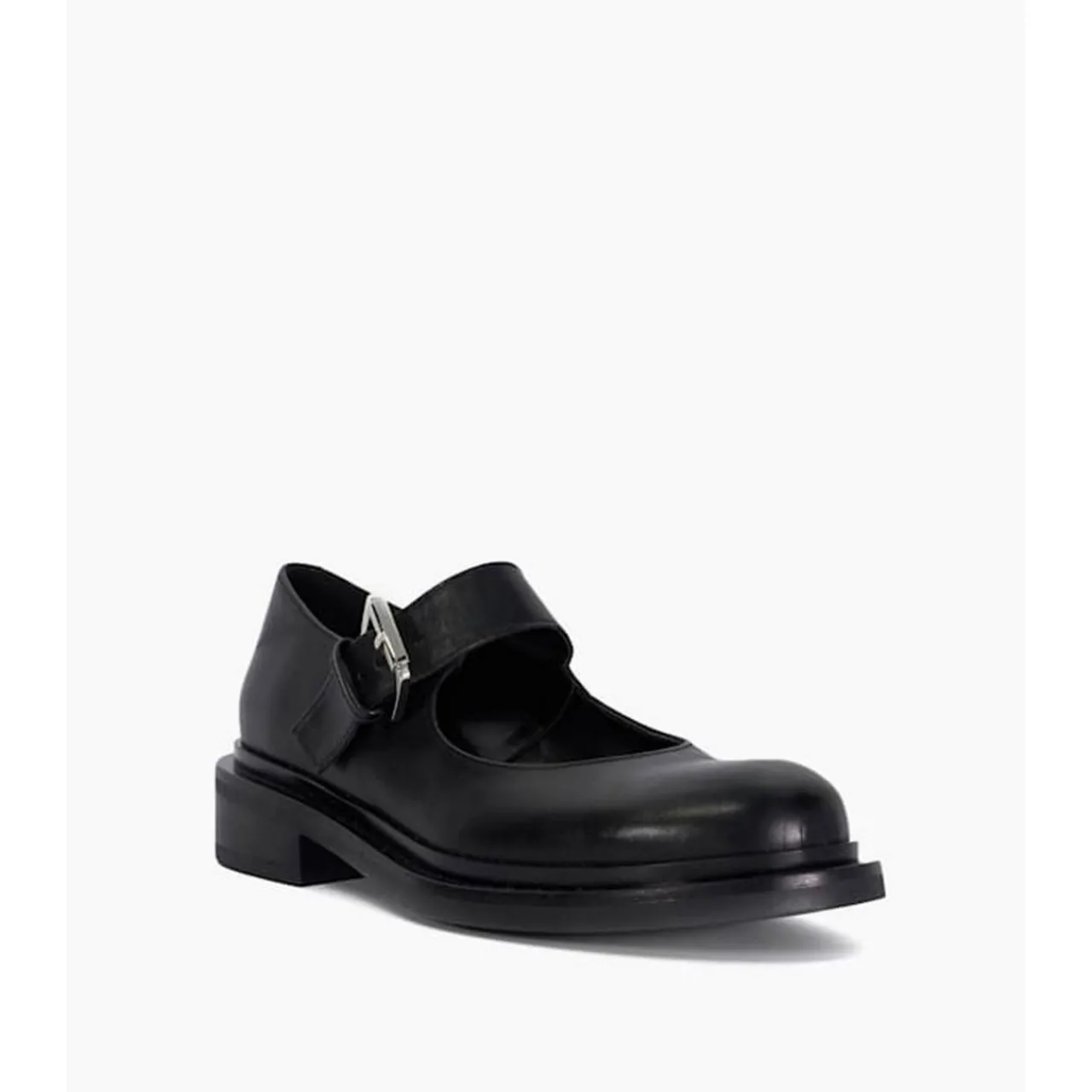 - Adjustable buckle fastening, wide strap, round toe, smooth finish, low block heel