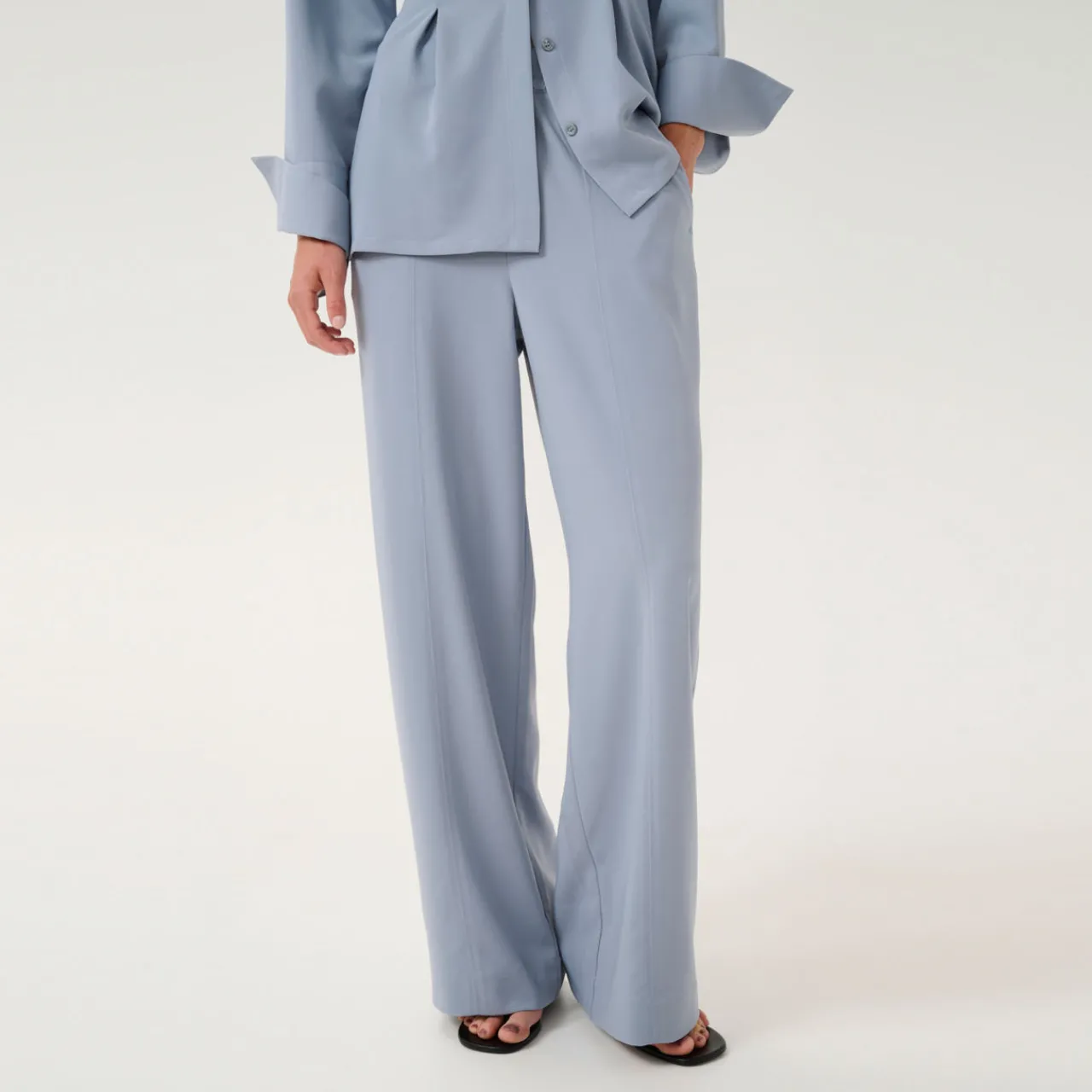 - Elasticated waistband, side entry pockets, wide-cut legs, stretch-fused fabric