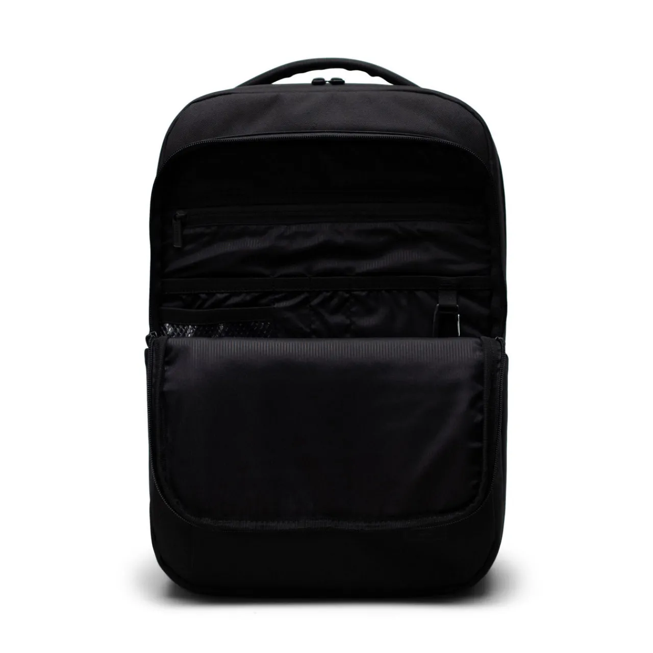 - EcoSystem™ 600D fabric, tonal stripe EcoSystem™ Liner, multiple compartments and pockets, padded and fleece lined laptop sleeve, fits 15/16-inch laptops, top zip fastenings, adjustable padded shoulder straps, carry loop, removable sternum strap, hidden shoulder strap pocket for wireless earbuds, front zipped compartment with organizers and key clip, airmesh luggage trolley sleeve, mesh side pockets, brand logo details