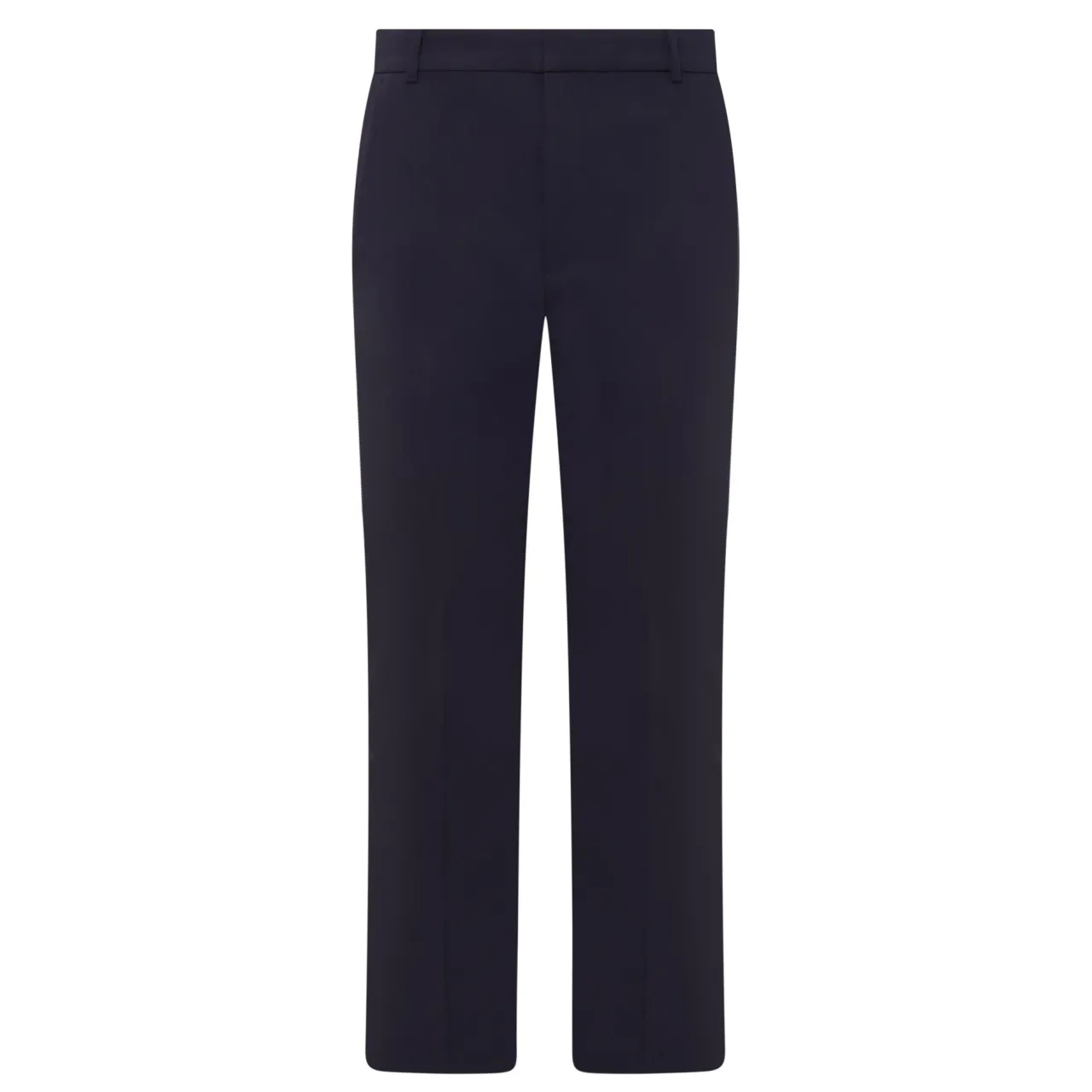 - Hook and fly zip fastening, belt loops, side entry pockets, rear pockets, pressed creases