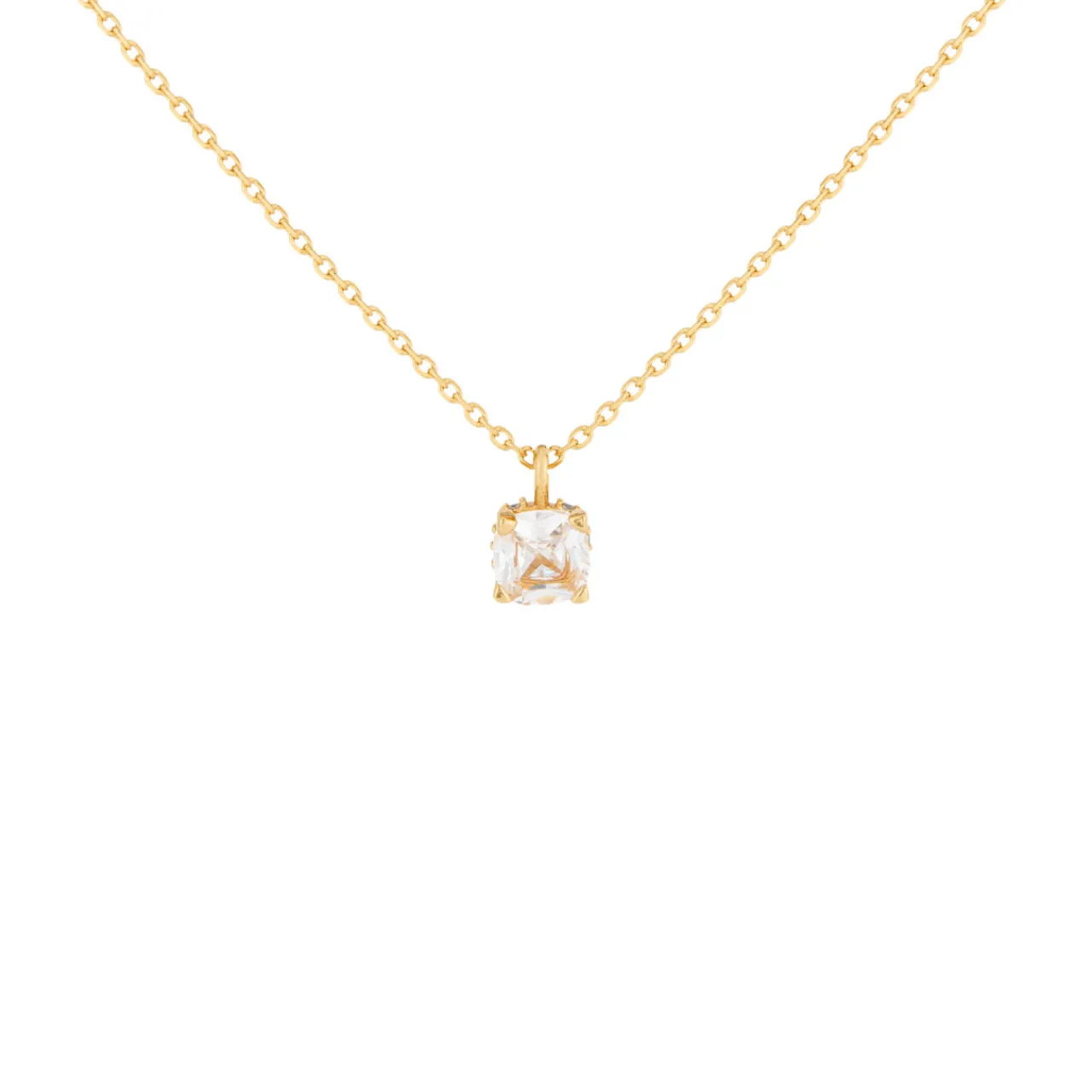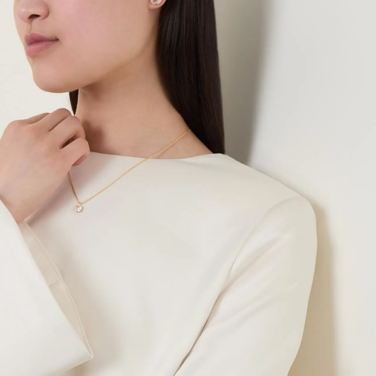 - Cubic zirconia pendant, four-prong design, adjustable, signature lobster claw fastening, gold-tone finish