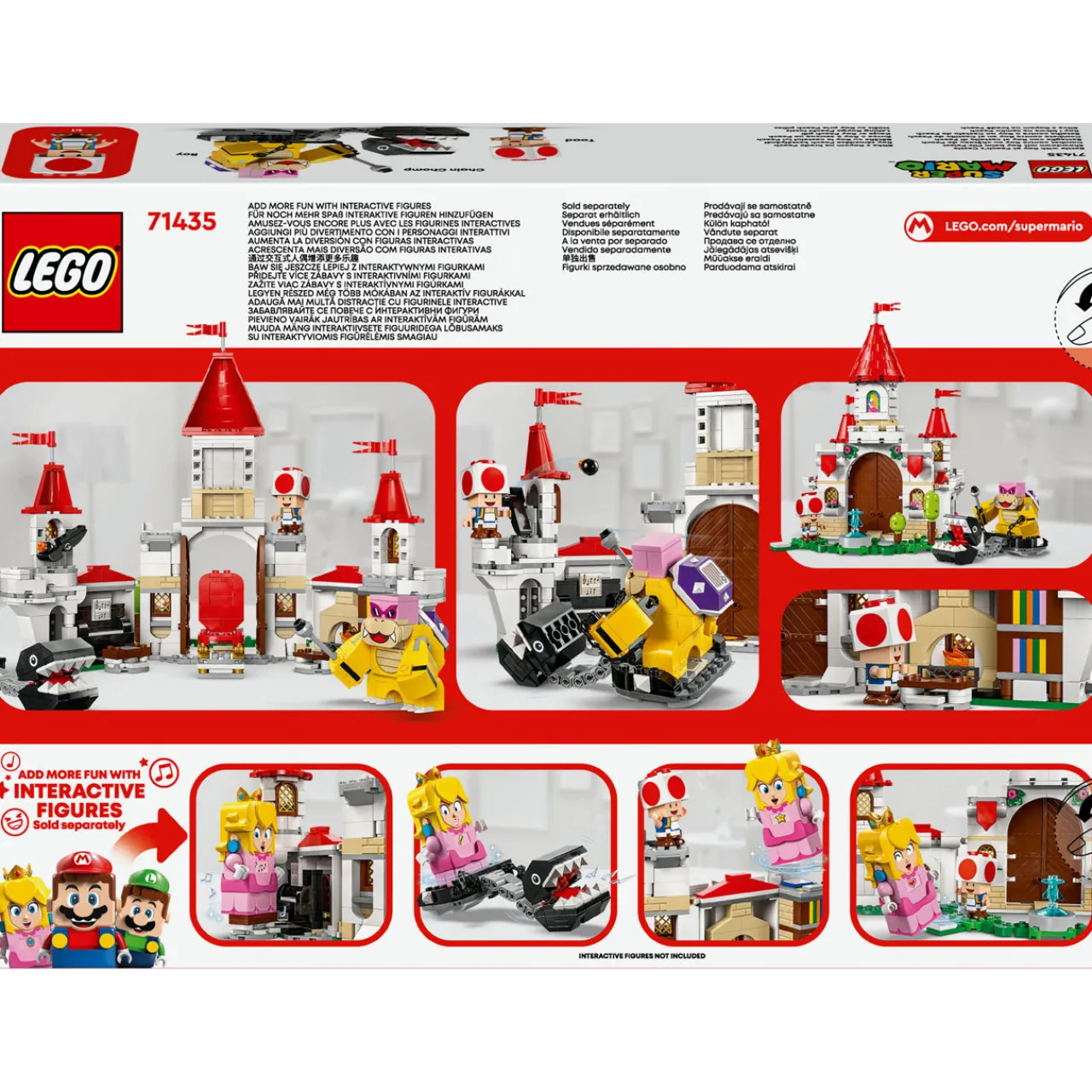 - 738 pieces, toy castle, Super Mario theme, brick-built castle model, easy-to-rebuild walls, tower, catapult toy, rotating throne, fountain, 3 Super Mario toy figures