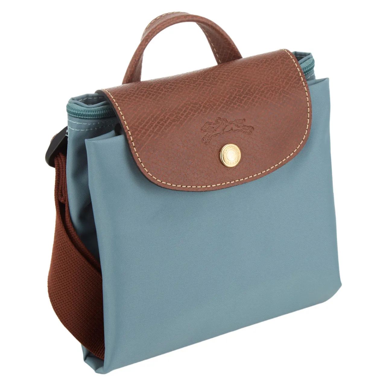 - Foldable style, adjustable straps, flap opening, zip-around fastening, gold-toned hardware, embossed logo