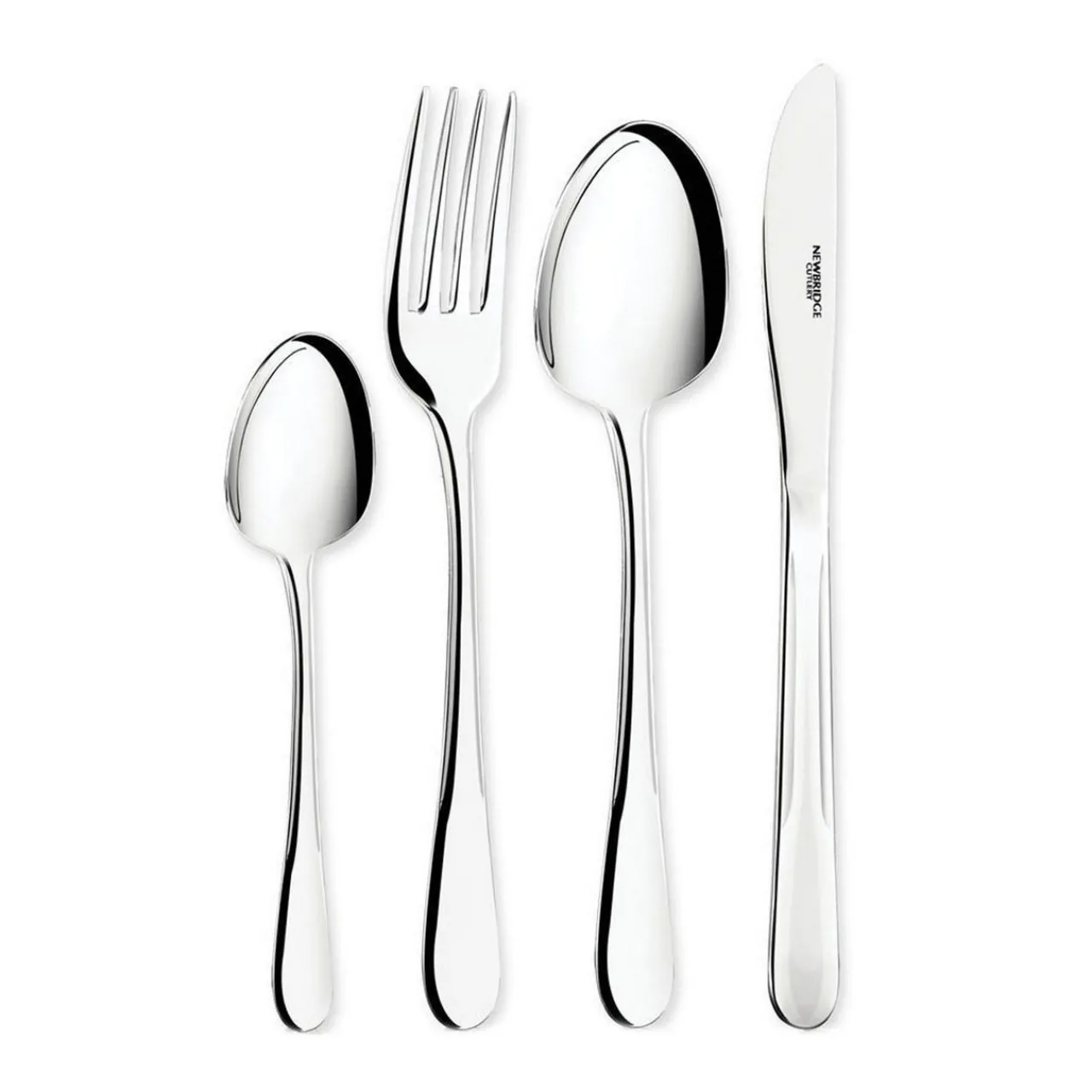 - 24-piece set, 6 table knives, 6 table forks, 6 dessert spoons, 6 tea spoons, engraved details along handles, high polished finish