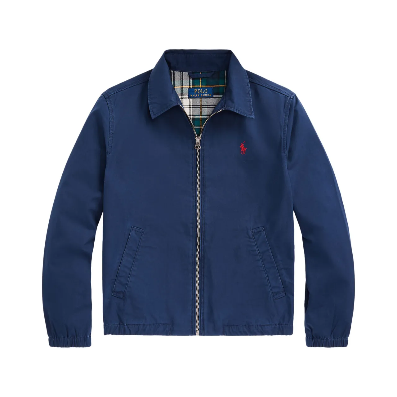 - Pointed collar, long sleeves, zip-through fastening, Polo Player logo embroidery, slit pockets, elasticated hemline, stretch cuffs, smooth fabric