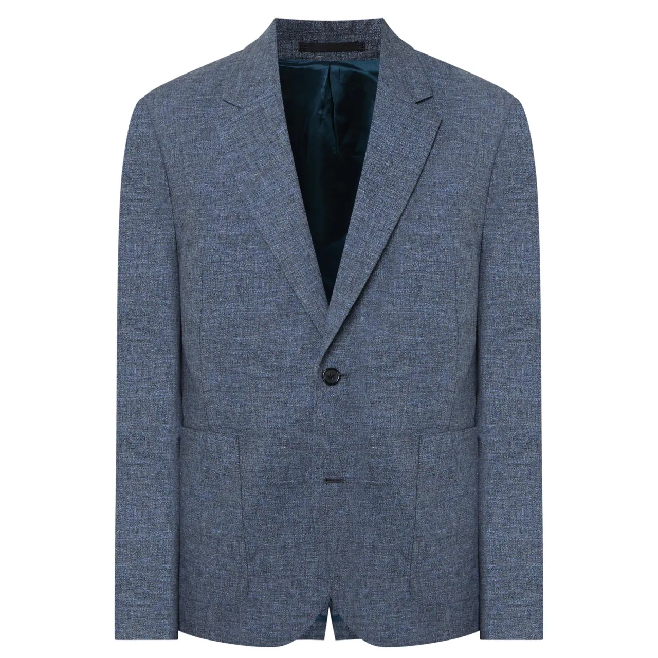 - Single-breasted, button fastening, notched lapels, patch pockets, chest pocket, vent at back, lightweight and stretch-fused fabric, buggy-lined, bluff-stitched details