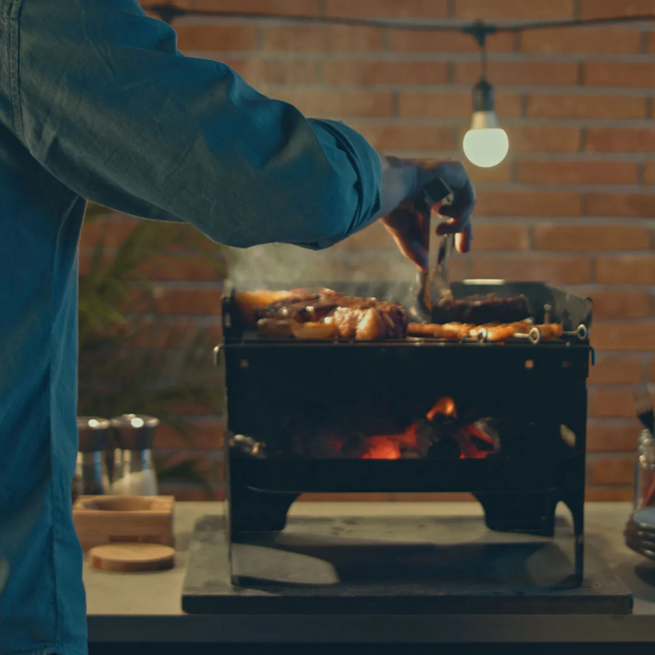 - This grill is designed and recommended for outdoor use only, with a recommended 1.5 kg amount of charcoal