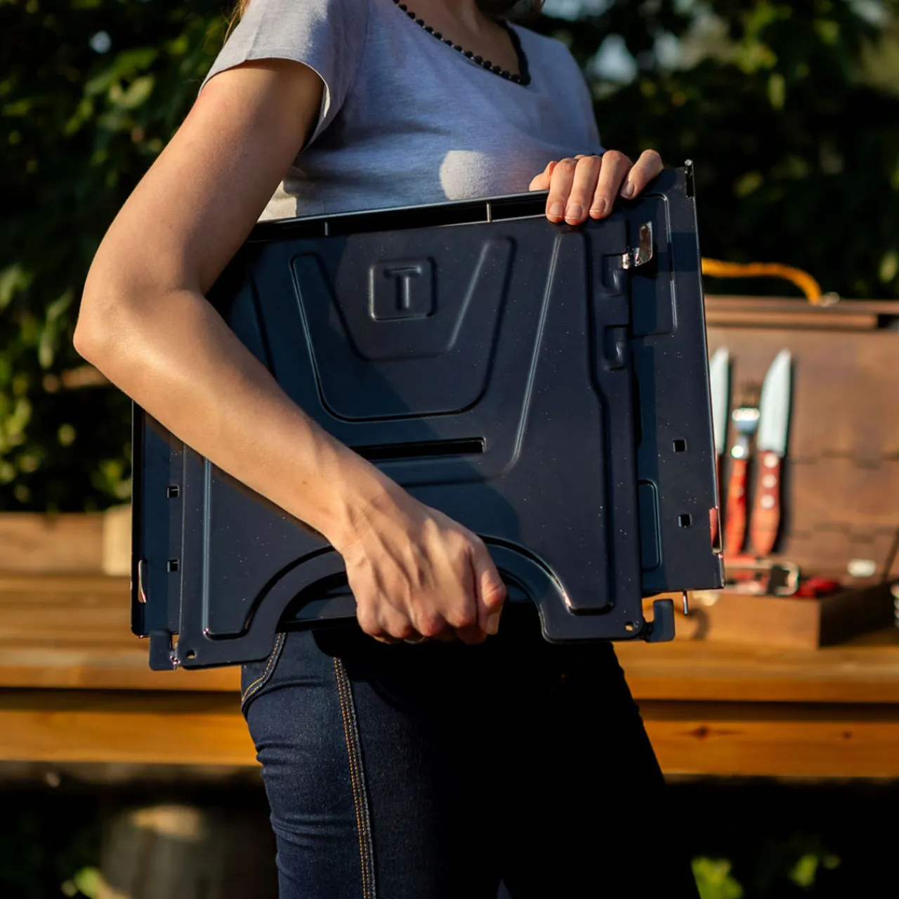 - Composition: Enamelled carbon steel with a stainless steel grate