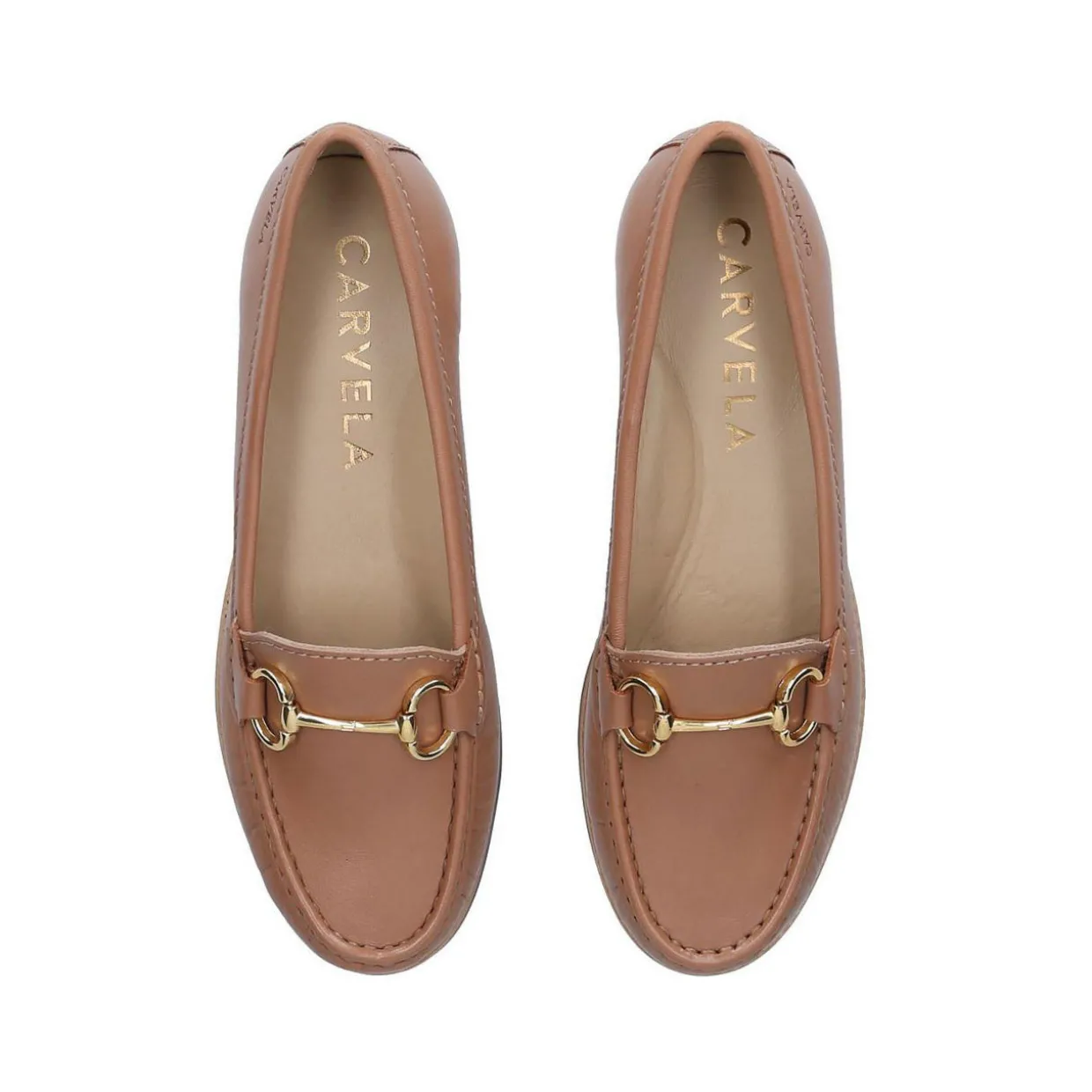 - Stacked heel, gold-toned snaffle detail, smooth finish