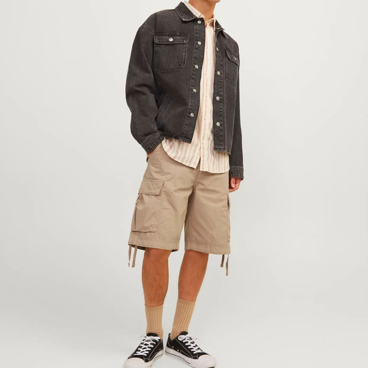 - Button and fly zip fastening, belt loops, multiple cargo pockets, durable twill fabric