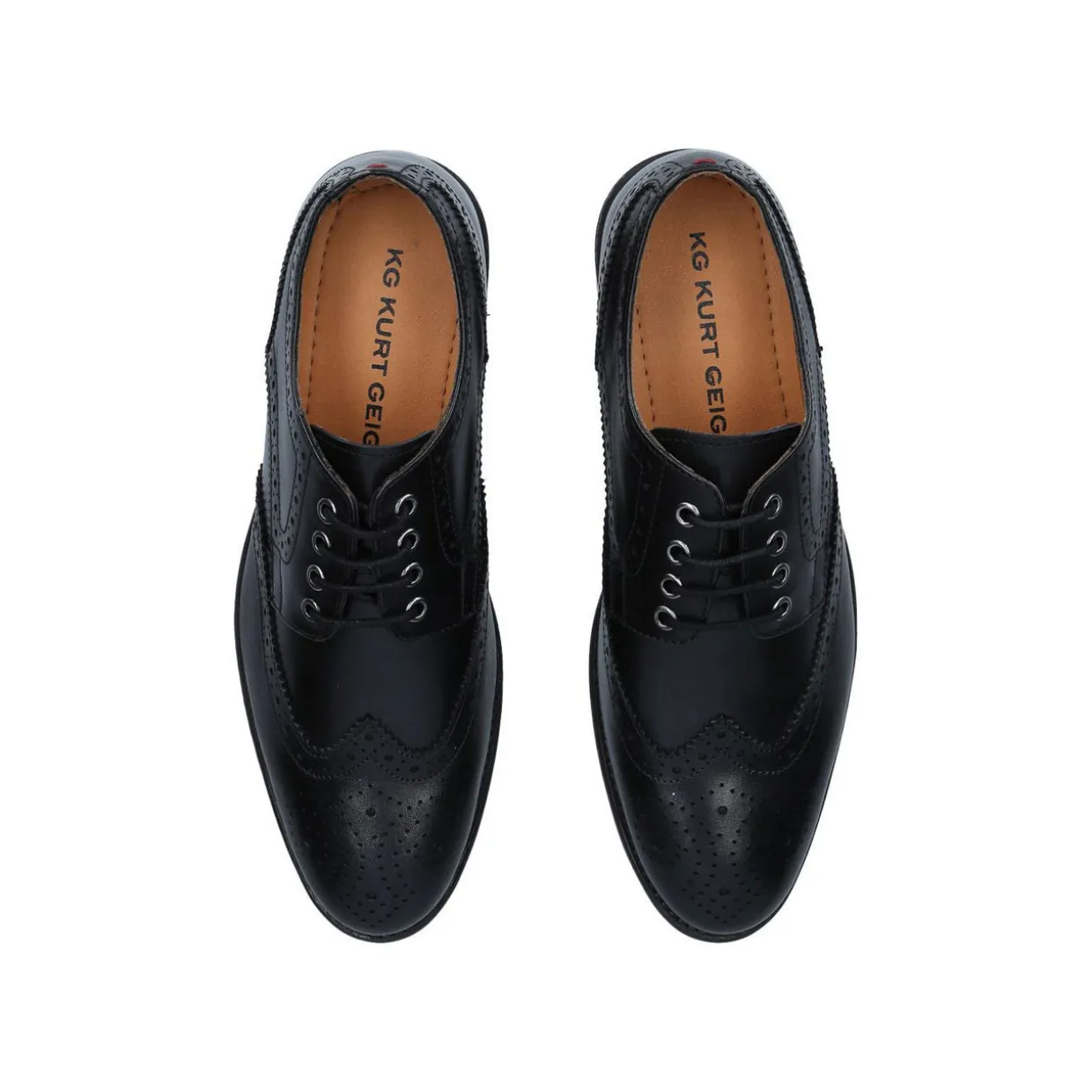- Laced up front, rounded toe, wingtip stitching, block heel sole, brogue detailing