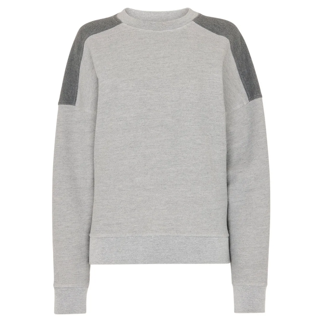 - Contrast panels on shoulders and back, long sleeves, crew neckline, straight hemline