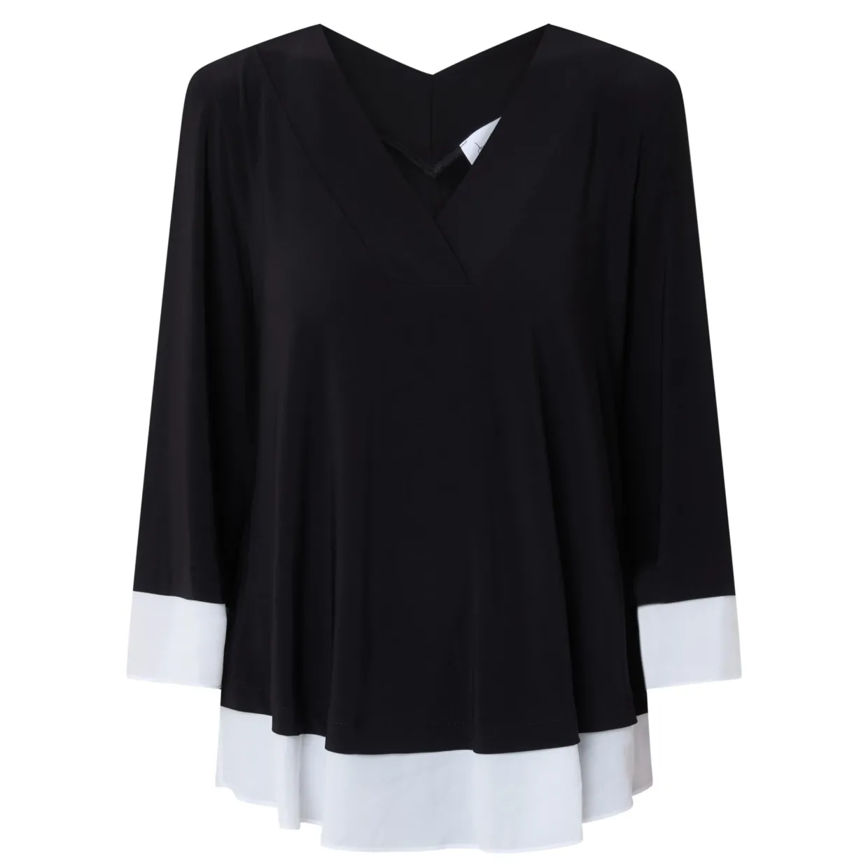 - Long sleeves, V-neckline, contrast trims, tonal stitching, smooth jersey fabric