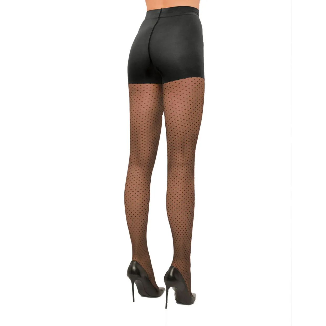 - Sheer-matte finish, wide knitted-in waistband, opaque control panels, sculpting design, geometric detailing, 30 denier, circular knit