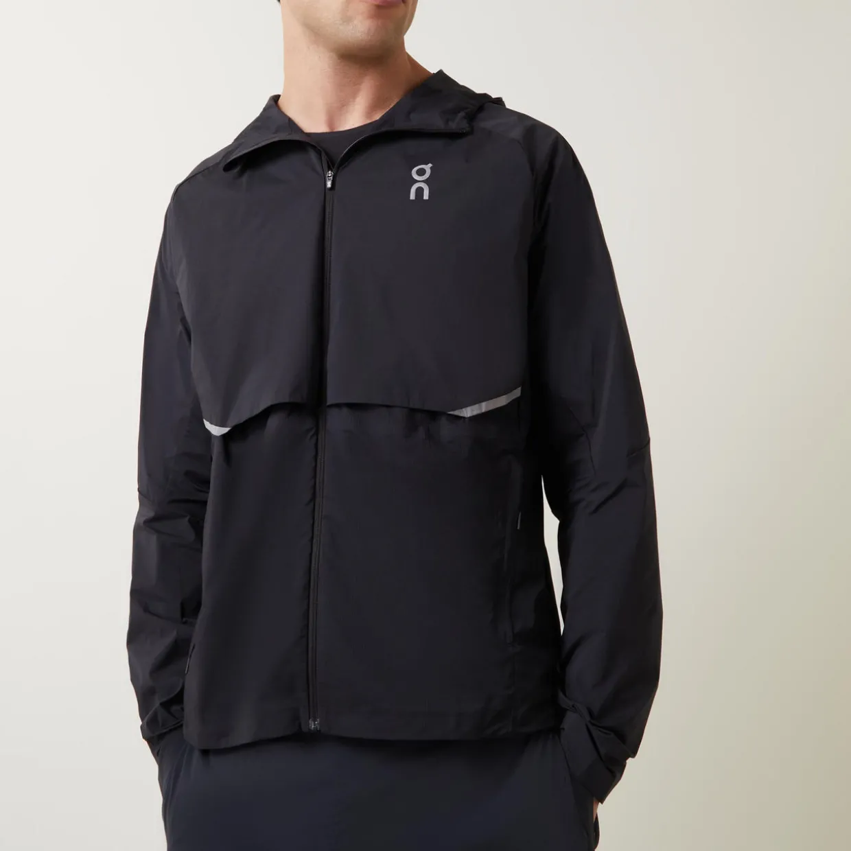 - Adjustable drawcord hood, long sleeves, logo detail, zip-through fastening, reflective details, unique spiral dart construction allows for movability, packable front pocket to pack it up and get on your way, breathable