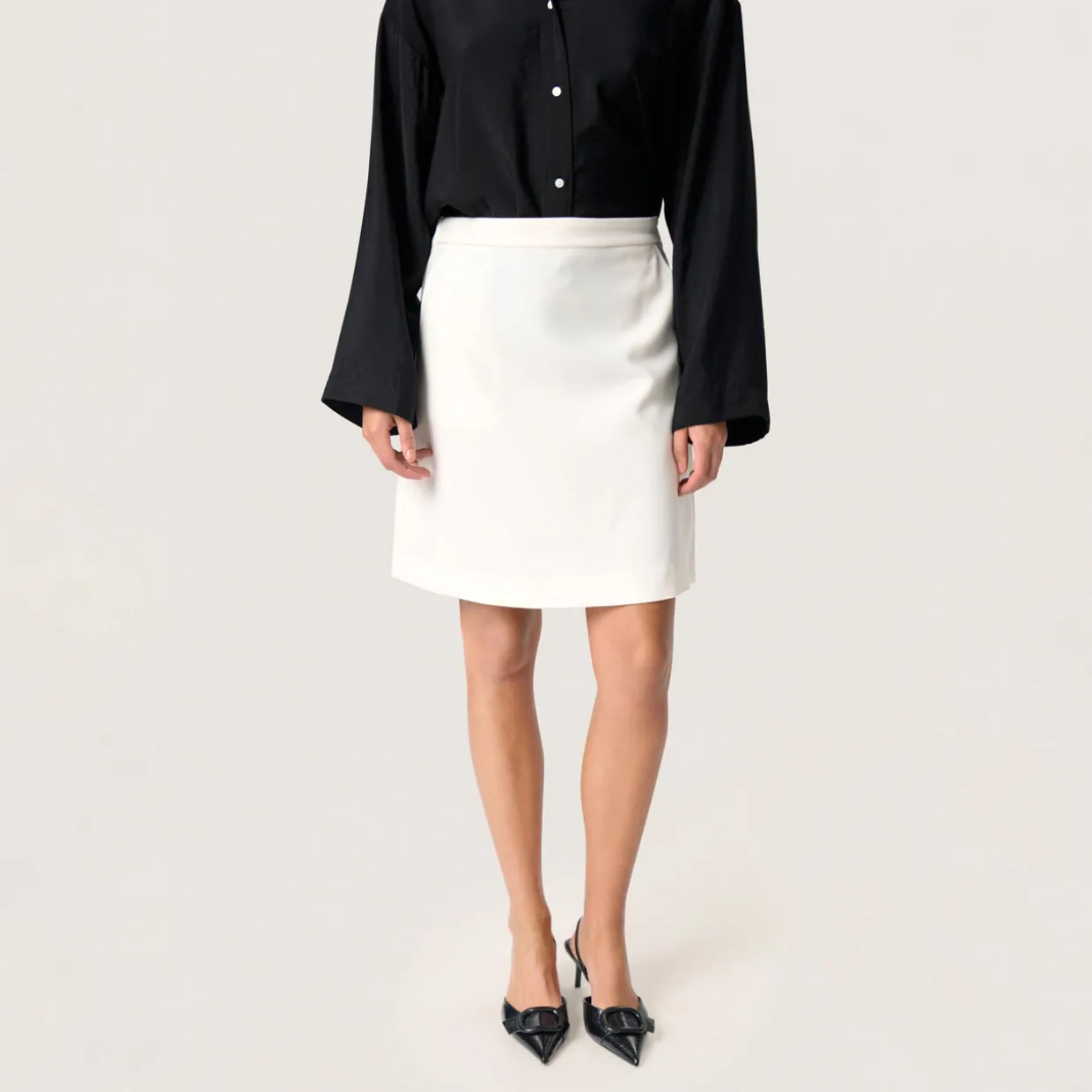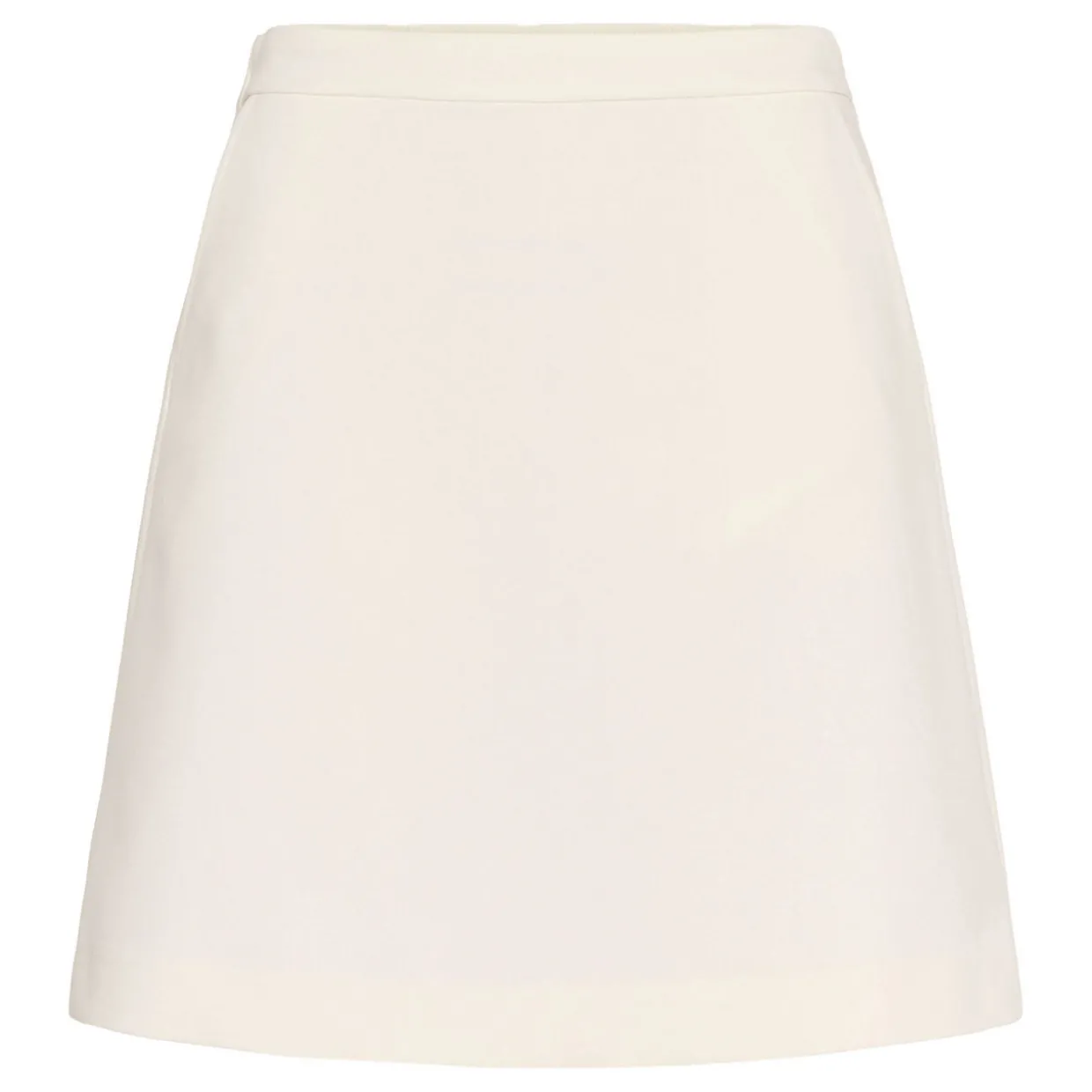 - Straight waistband, invisible side seam zipper, A-line silhouette, side pockets, woven, mini length